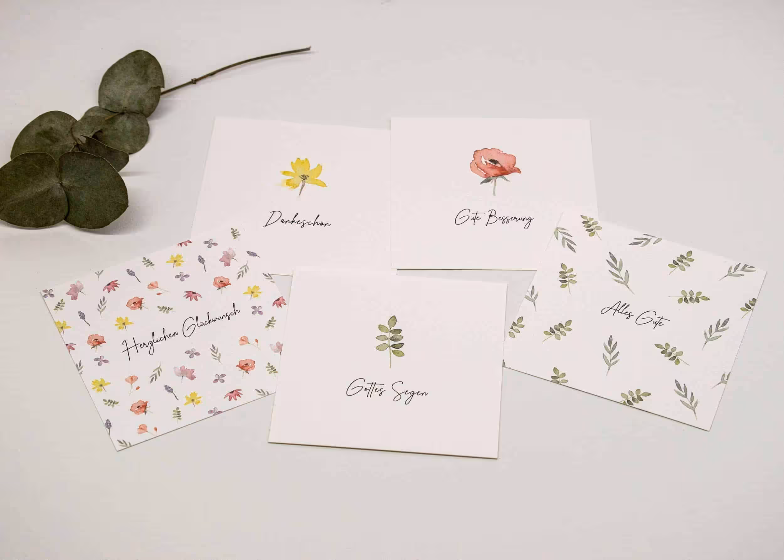 Jede Karte misst 10,5 x 10,5 cm und ist auf schönen Cremekarton gedruckt, der sich ganz toll beschreiben lässt. Die Rückseite bietet Platz für deine persönlichen Glückwunsche.