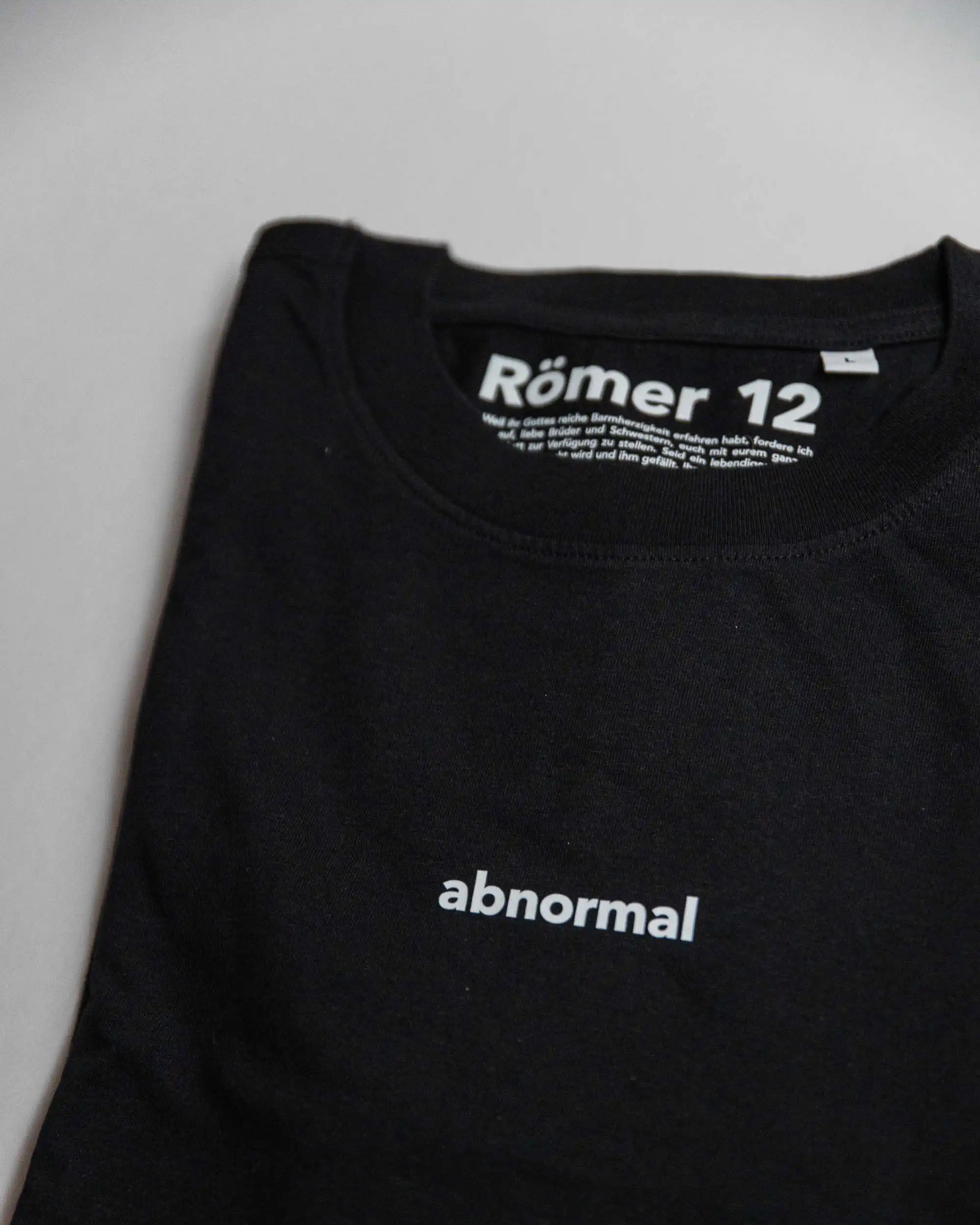 römer 12 ist auf der innenseite wortgetreu abgedruckt. das motiv «abnormal» ist von dem folgenden bibelvers inspiriert: passt euch nicht den maĂŸstäben dieser welt an, sondern lasst euch von gott verändern, damit euer