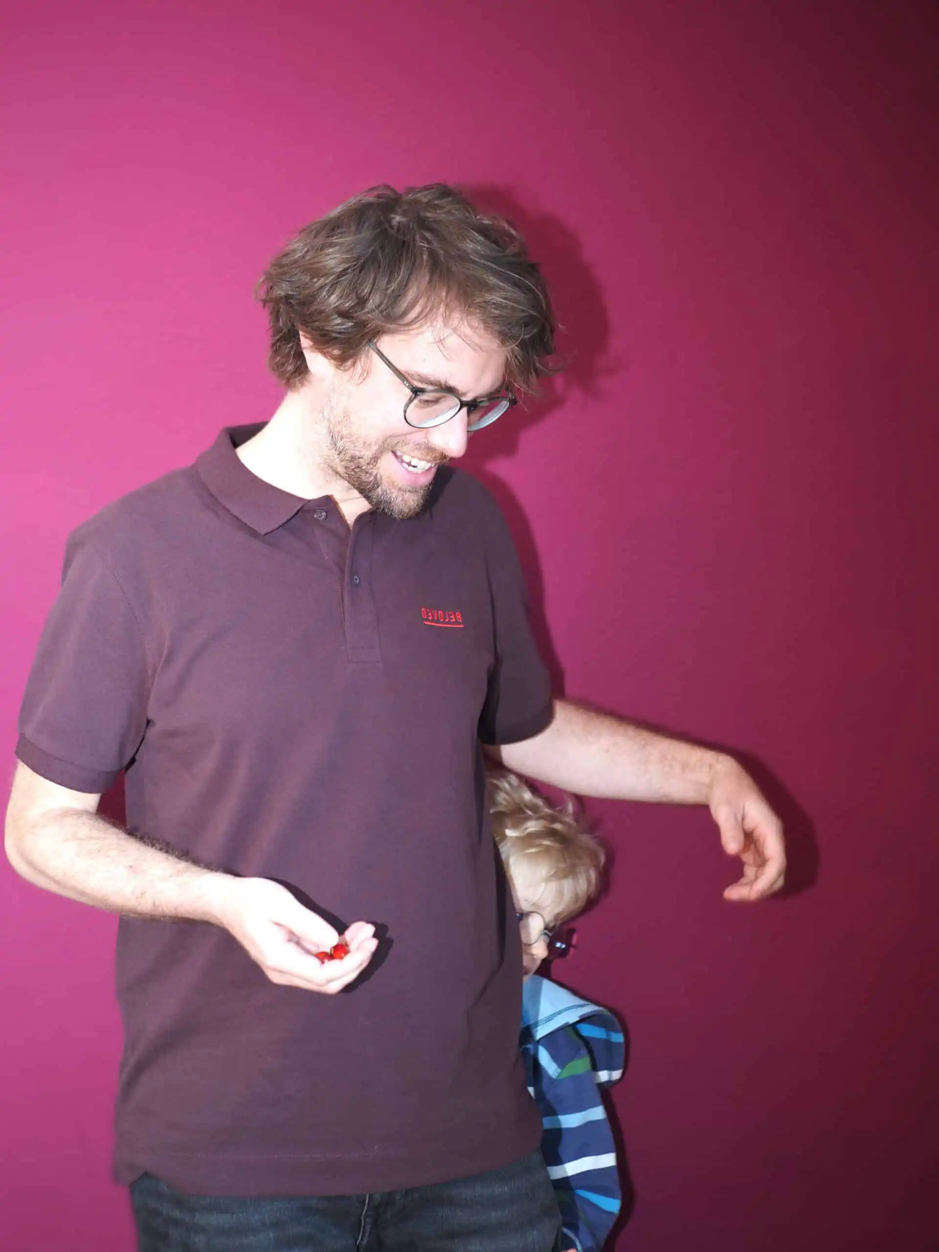 Fein gearbeitetes Poloshirt in der der Farbkombination Burgundy mit rotem Stick.