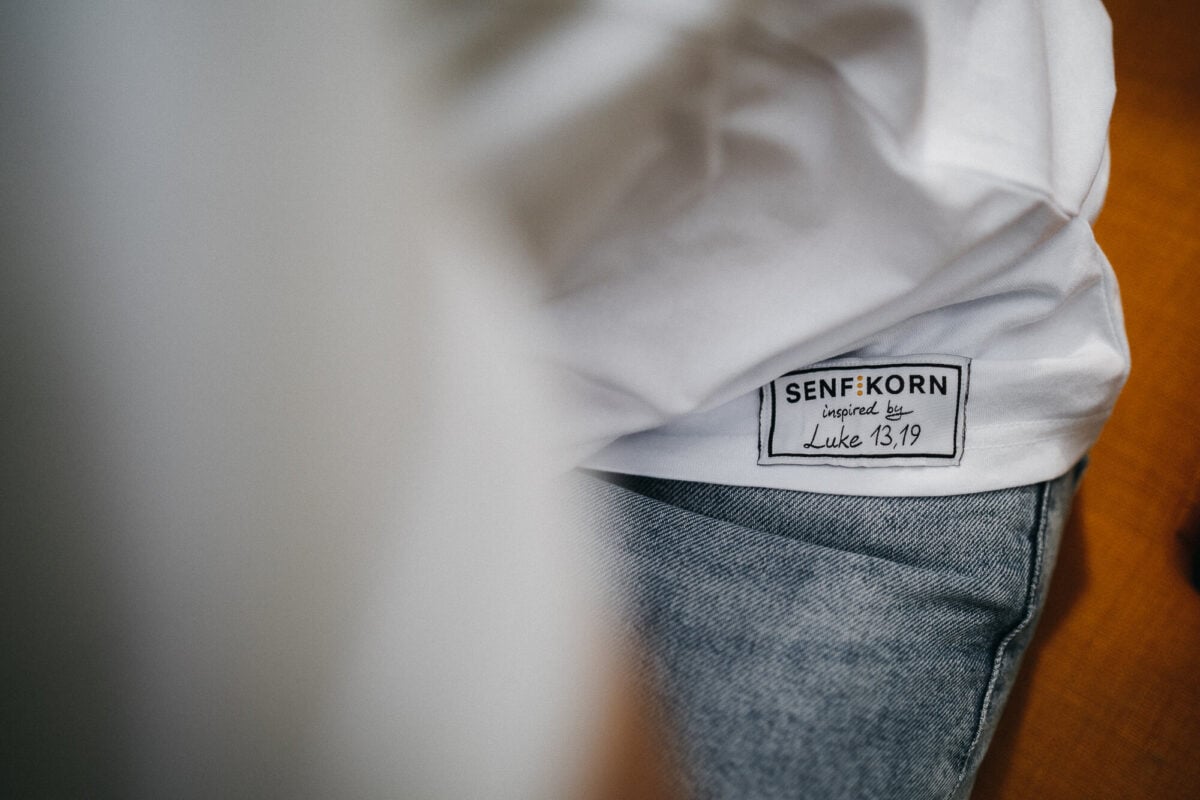 Senfkorn | Christliches T-Shirt – unisex weiß – Bio-Baumwolle – Fair Wear