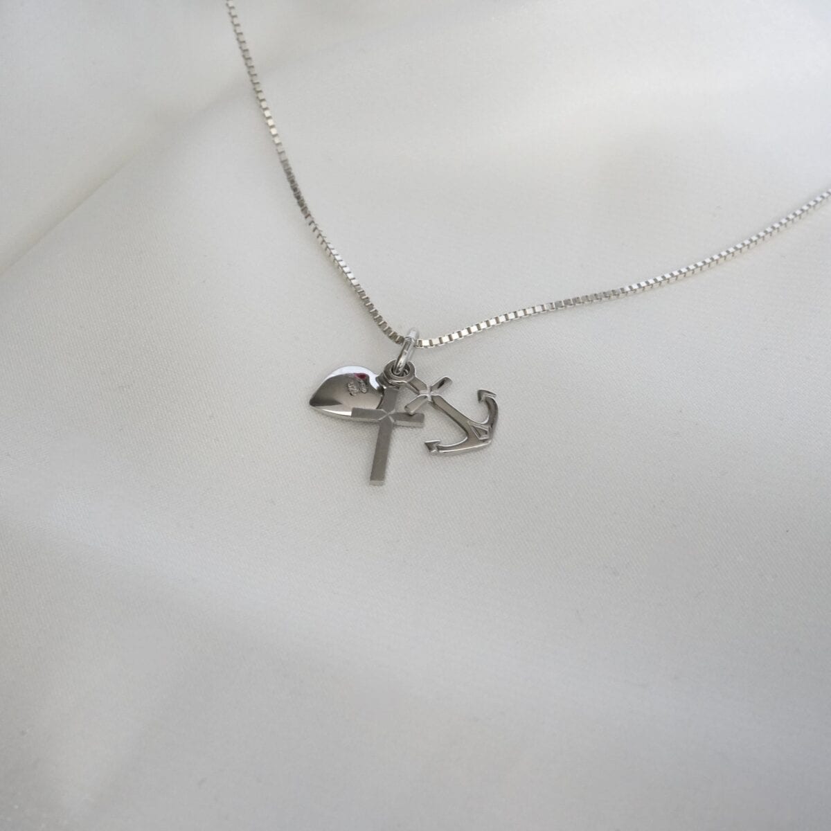 Diese feine Kette aus 925 Sterling Silber (gefertigt in deutscher Silberschmiede) vereint gleich drei bedeutende Symbole:
