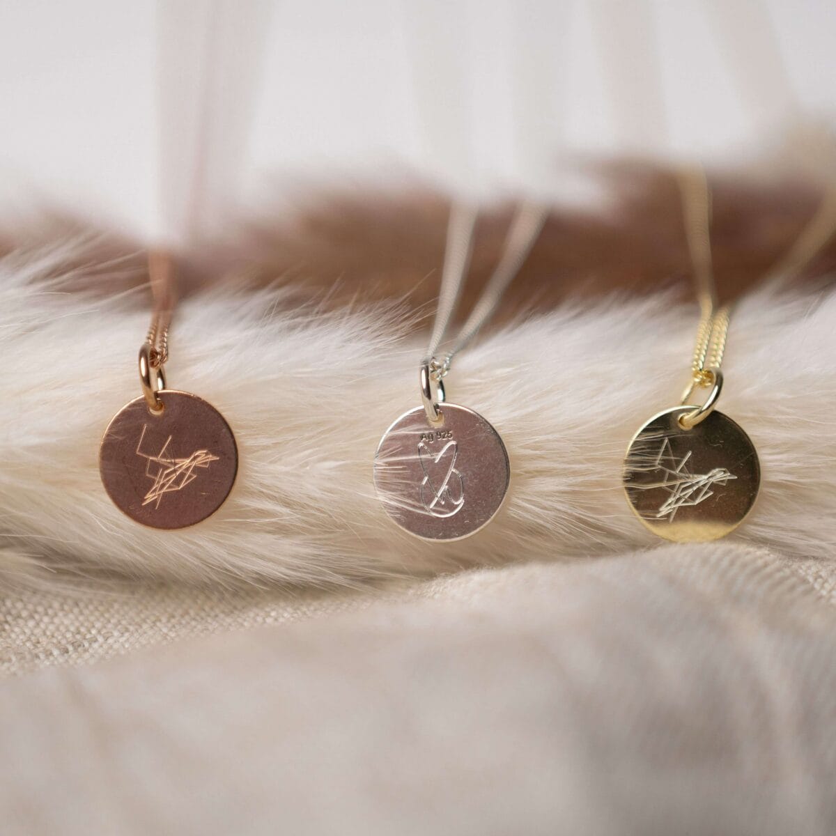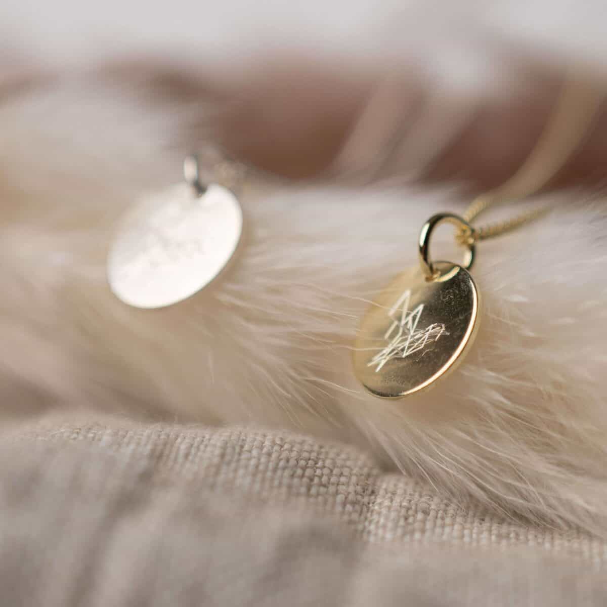 Die Plättchen wurden von uns graviert. Daher kann es zu minimalen Unterschieden zwischen Produktbild und Kette kommen.