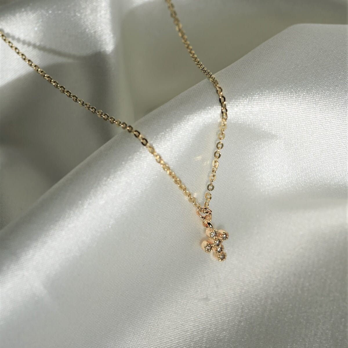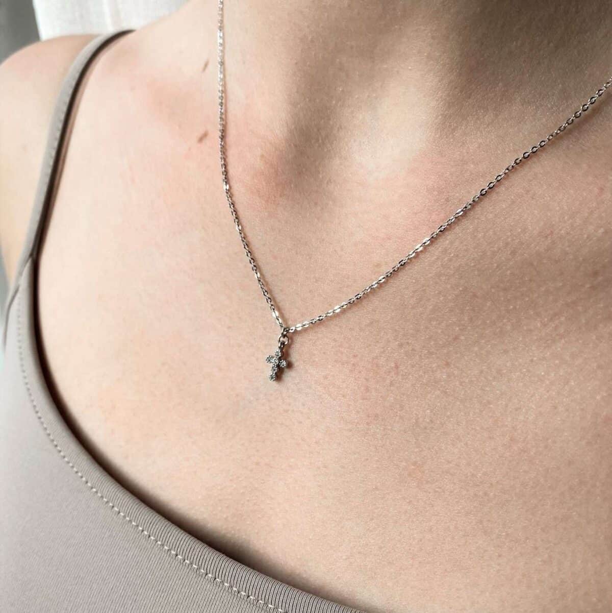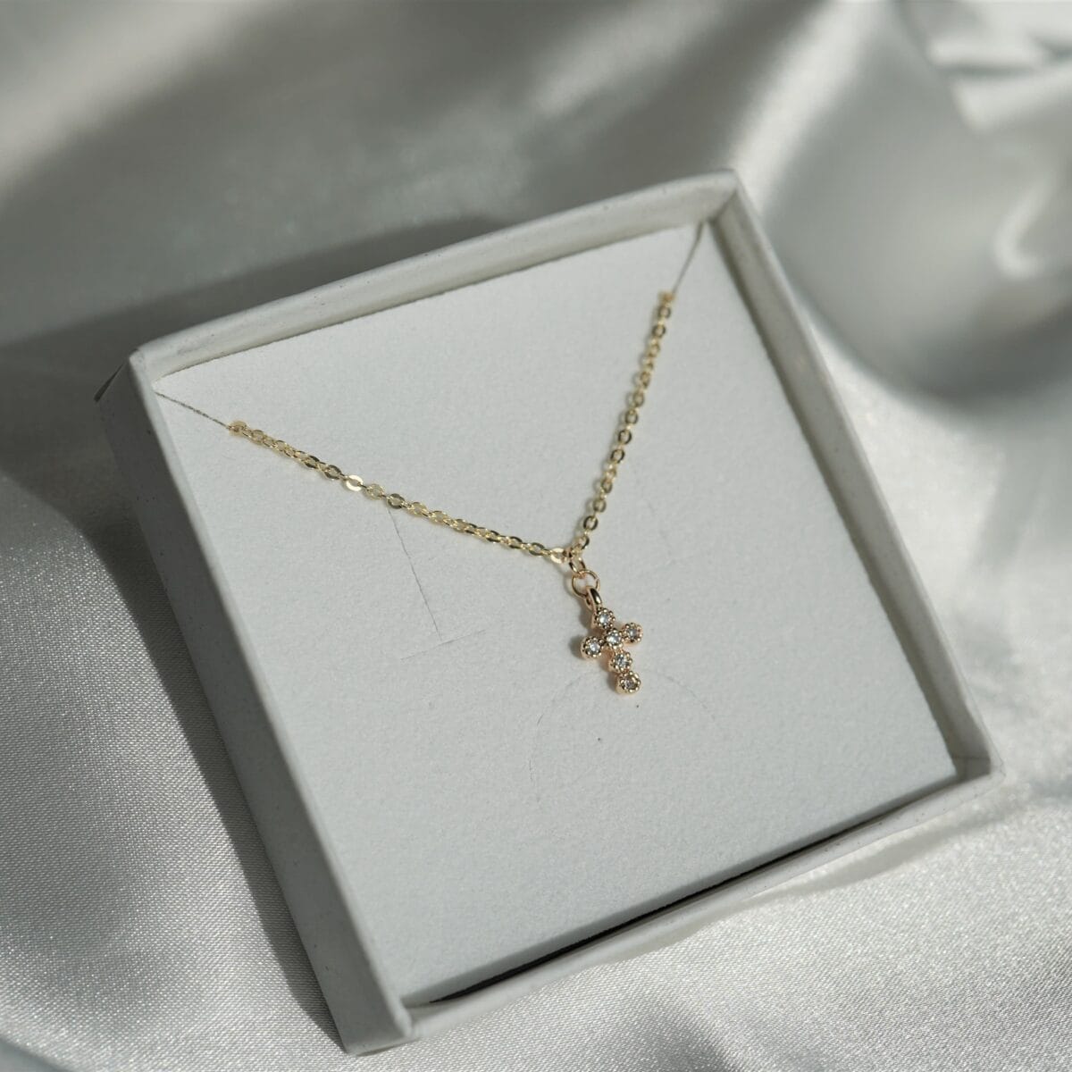 Die Kette ist in einer deutschen Silberschmiede in Idar-Oberstein gefertigt und besteht aus massivem 925 Sterling Silber. Sie ist mit einem Anlaufschutz versehen, was sie gegen Verfärbungen schützt und besonders hochwertig macht. Der minimalistische Kreuzanhänger ist aus Messing und in der goldenen Version 24k Gold beschichtet. Die Glitzersteinchen funkeln wunderschön, wenn das Licht darauf fällt.