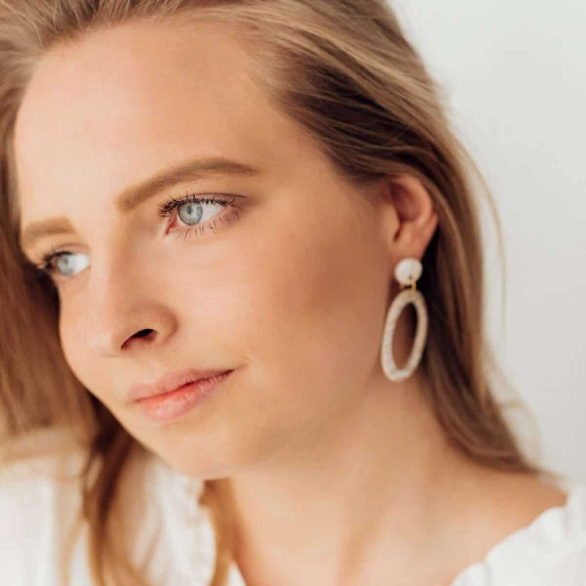 “Classic Circle (with cutout)” transportiert Leichtigkeit und ist dennoch ein unschlagbarer Hingucker. Die Kombination aus Stabilität, Festigkeit, geringem Gewicht und großer Farbvielfalt macht das Polymer zu dem perfekten Material für Ohrringe. Die schlichte und zugleich edle Marmorierung gibt es in den Farben beige/weiß und grau/weiß.