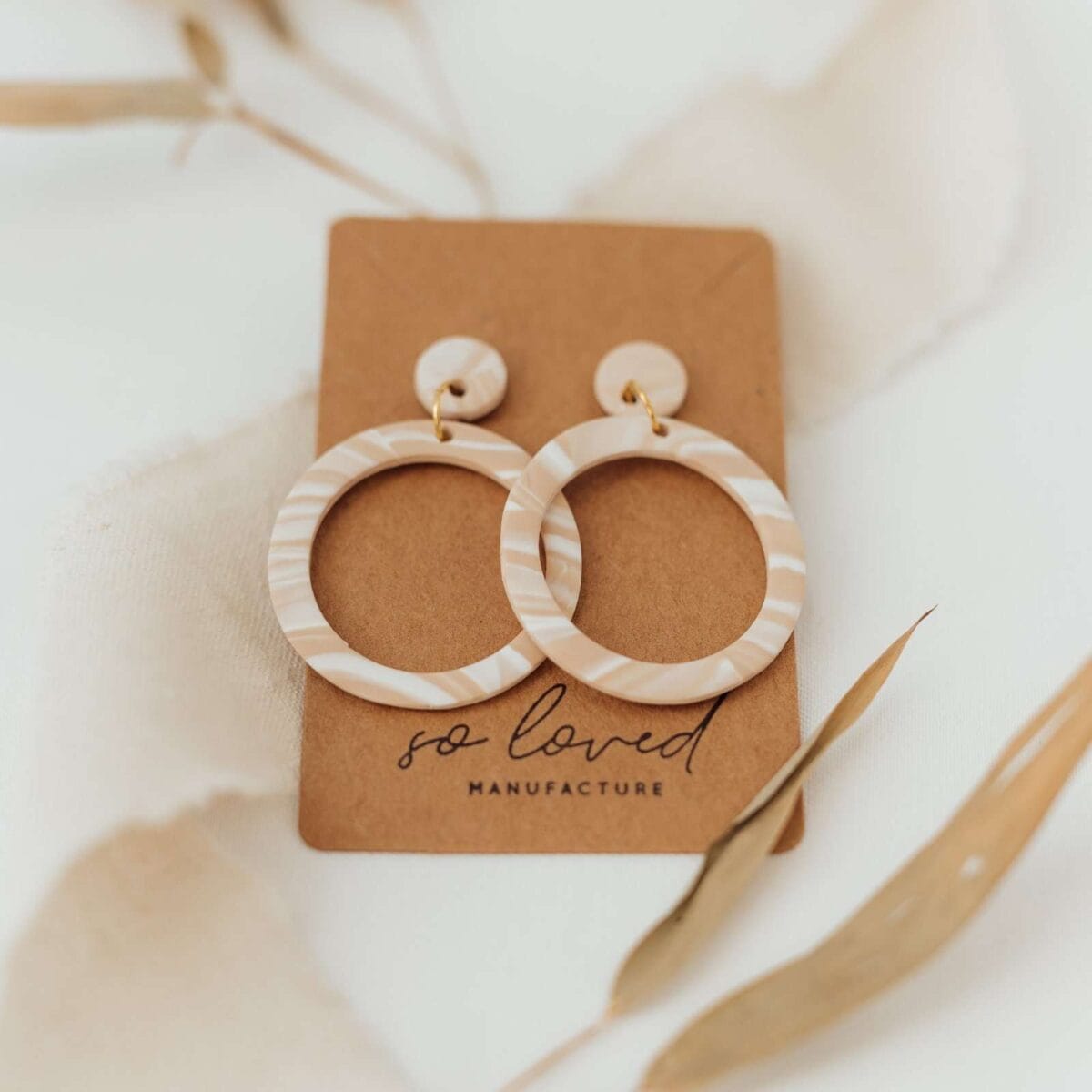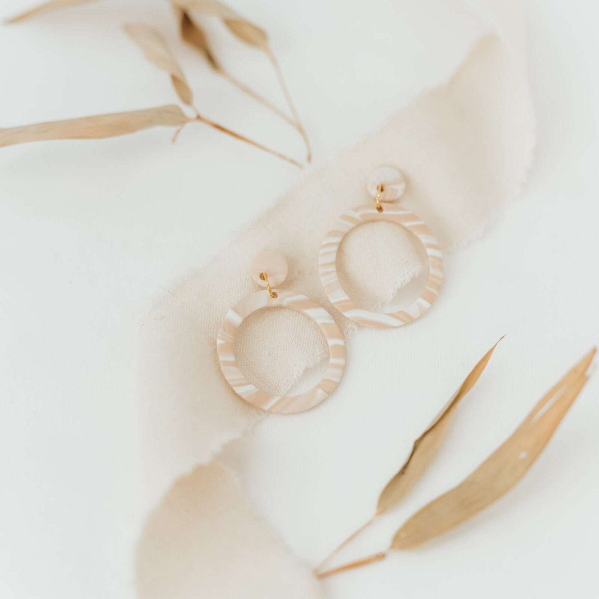 Classic Circle with cutout | Christliche Ohrringe – Polymer Edelstahl – beige/weiß grau/weiß