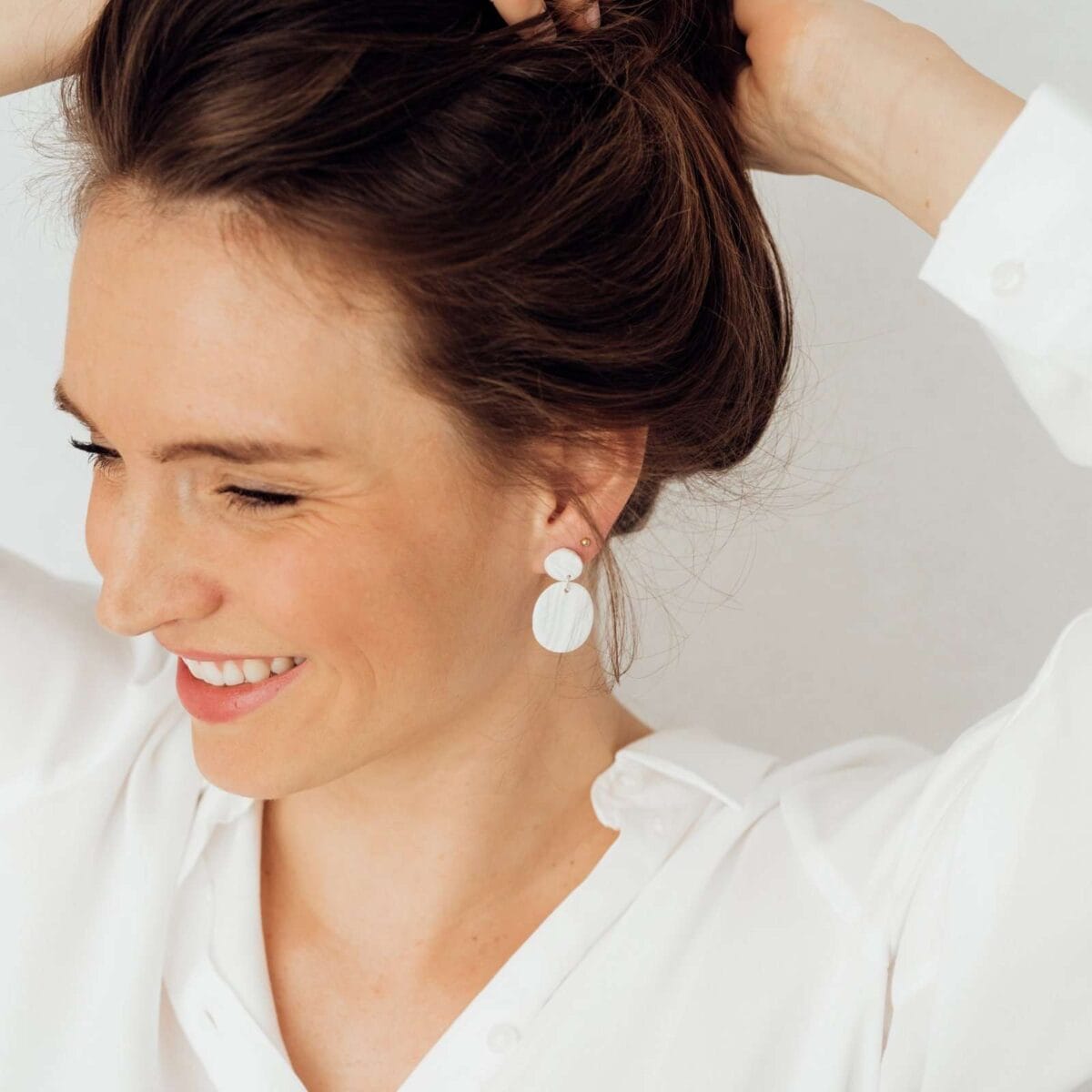 „Oval Small” ist unser Liebling aus der Classic-Collection. Die Kombination aus Stabilität, Festigkeit, geringem Gewicht und großer Farbvielfalt macht das Polymer zu dem perfekten Material für Ohrringe. Die schlichte und zugleich edle Marmorierung gibt es in den Farben beige/weiß und grau/weiß.