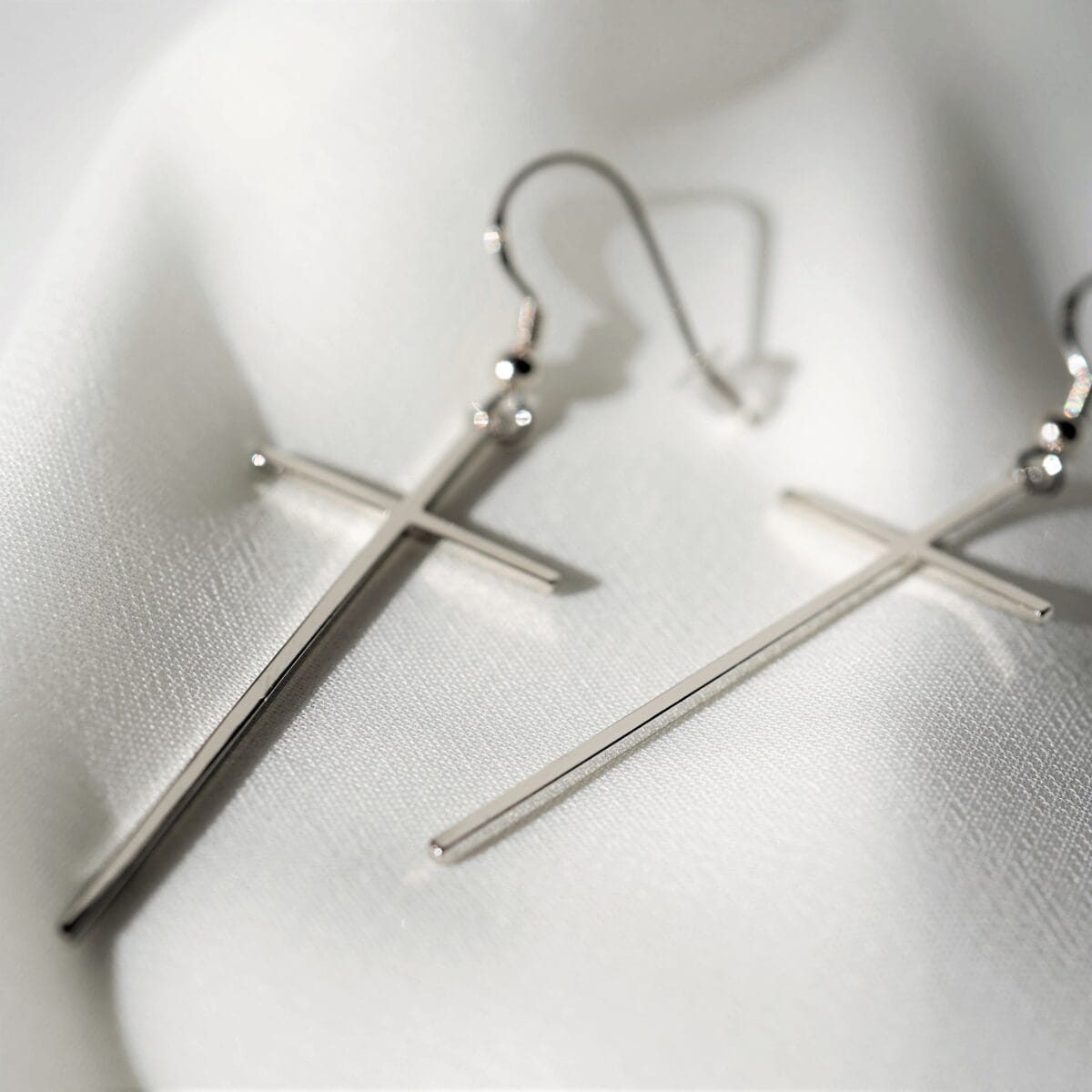 Moderne Ohrringe aus hochglanzpoliertem 925 Sterling Silber mit starker Botschaft – das Kreuz darf dich immer wieder daran erinnern, dass Jesus für dich gestorben ist. Er hat deine Sünden auf sich genommen, damit du ewig leben darfst, wenn du an ihn glaubst.