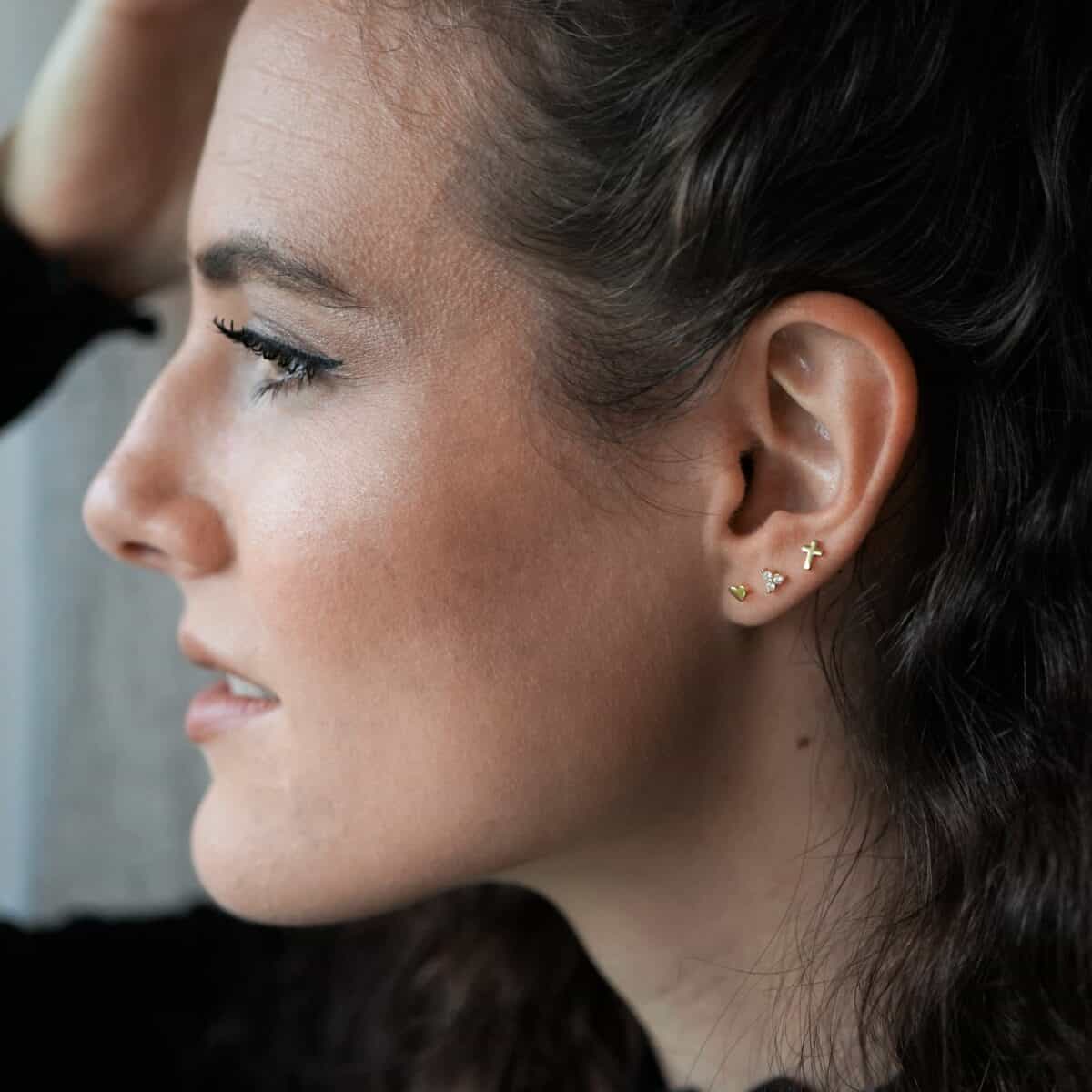 Minimalistic Cross | Christliche Ohrstecker – 925 Sterling Silber – Gold beschichtet – 5×4 mm