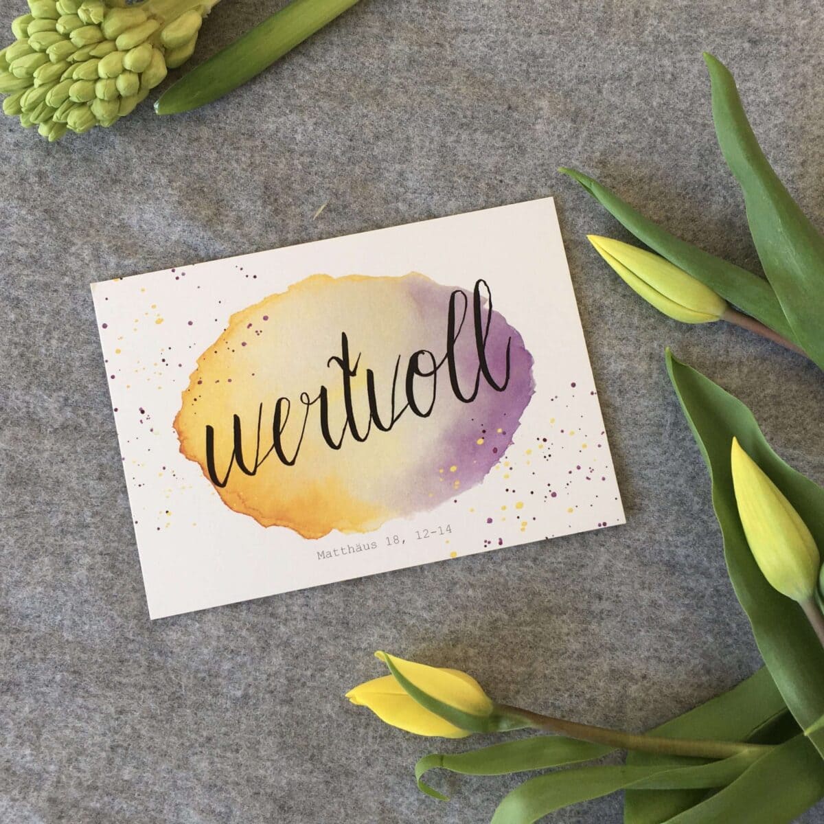 – “Wertvoll” nimmt Bezug auf die Bibelstelle Matthäus 18, 12-14. Die Bibelstelle ist in einem dezenten grau am unteren Rand der Karte aufgedruckt