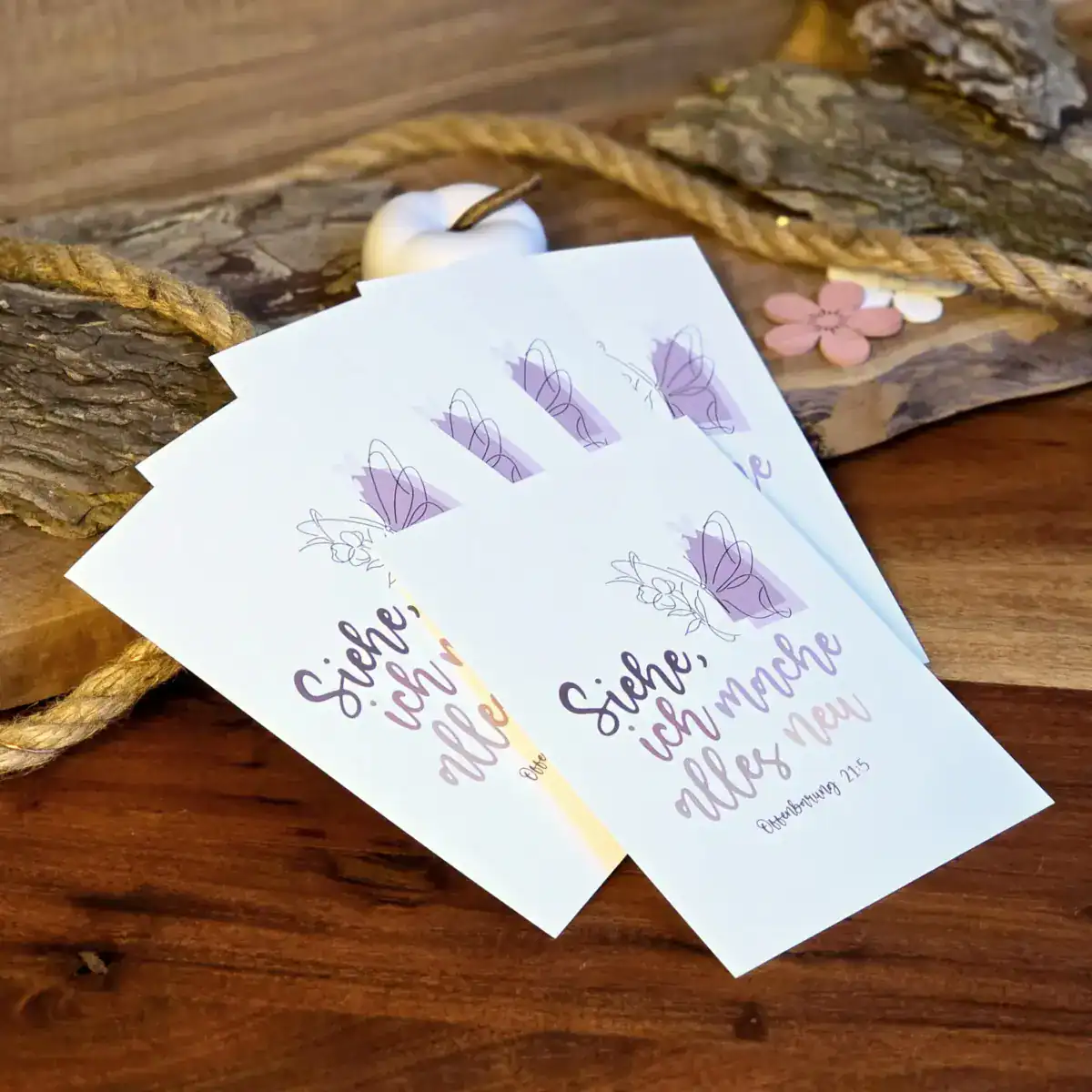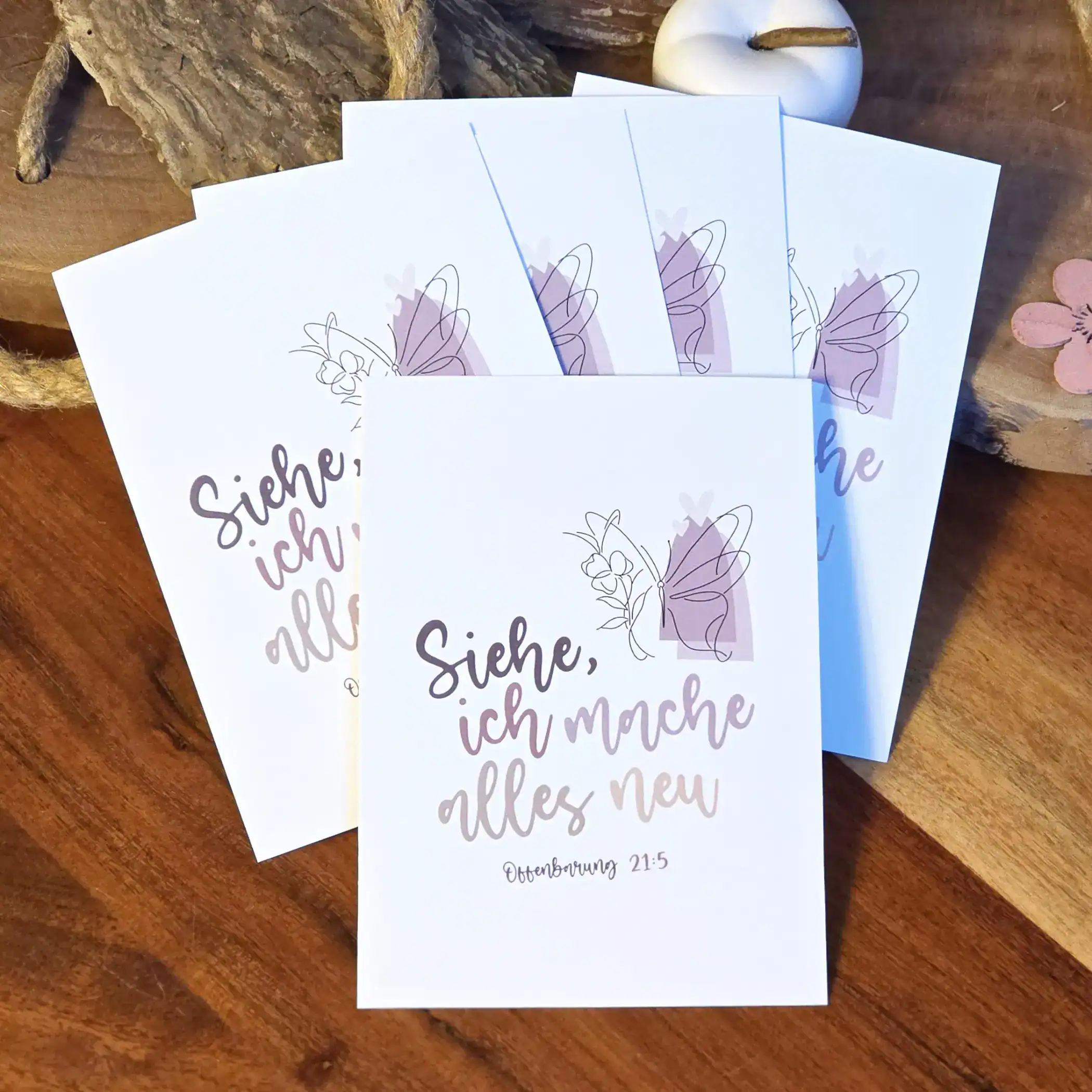 Mit diesen fünf hochwertigen Postkarten zur Jahreslosung 2026 bringst du Gottes kraftvolle Zusage „Siehe, ich mache alles neu“ (Offenbarung 21:5) direkt in deinen Alltag – oder in das Leben deiner Lieben. Das minimalistische Design mit handschriftlicher Typografie und dem zarten Schmetterlingsmotiv verbindet moderne Ästhetik mit einer tiefen geistlichen Botschaft: Gott schenkt Neuanfang, Hoffnung und Verwandlung. Ob als kleine Ermutigung für Freunde, als Deko für deinen Schreibtisch oder als klares Statement für unterwegs – diese Karten erinnern dich täglich daran, dass Er alles neu macht.