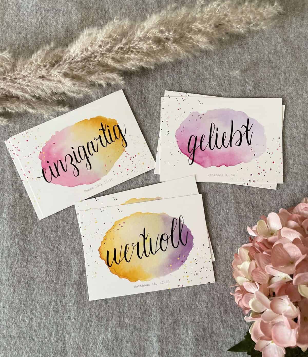 – 2 x Postkarte “einzigartig” – nimmt Bezug auf die Bibelstelle Psalm 139, 13-16.