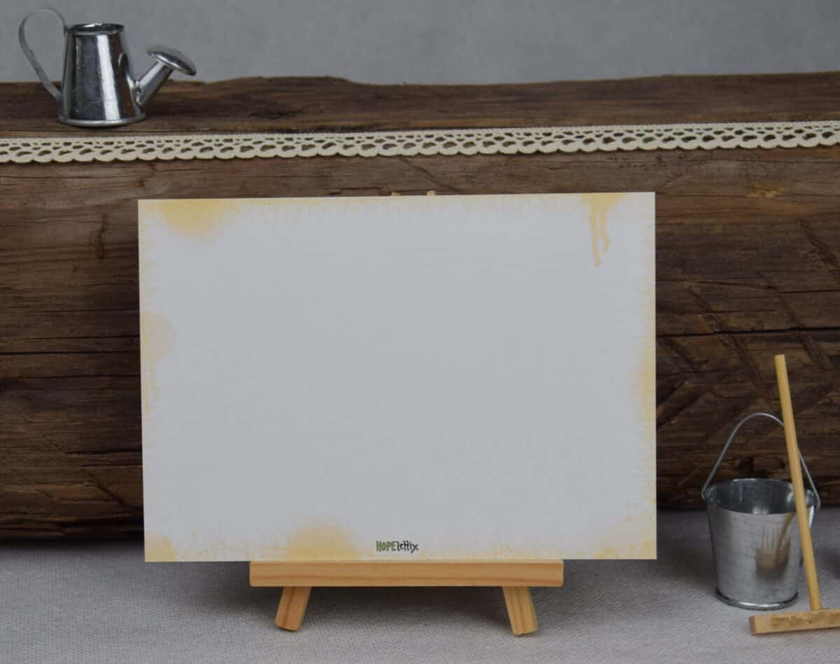 Das Design ist im DinA6 Format auf einem 300g Karton gedruckt.