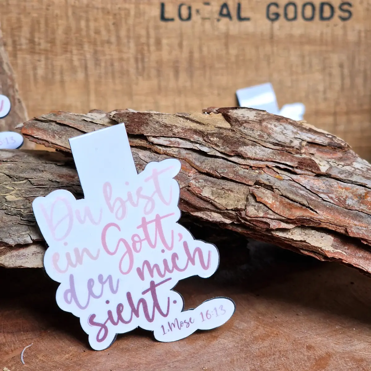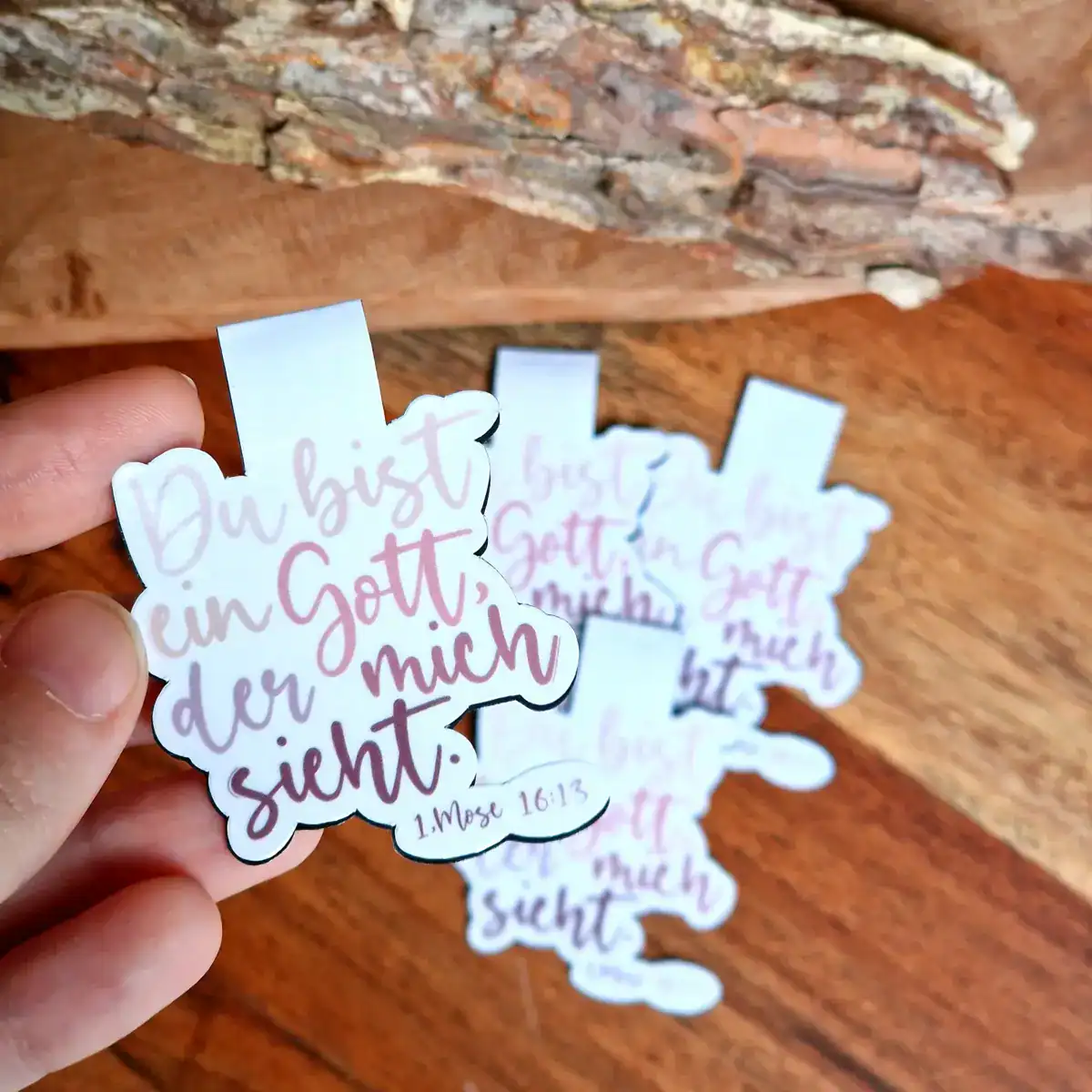 Dieses Magnet-Lesezeichen erinnert dich täglich an eine der schönsten Zusagen aus Gottes Wort: „Du bist ein Gott, der mich sieht.“ aus 1. Mose 16:13. Es ist nicht nur ein praktischer Helfer für deine Bibel oder dein Lieblingsbuch, sondern auch eine kleine Ermutigung, die dich daran erinnert, dass Gott dich kennt und liebt – in jeder Situation deines Lebens.