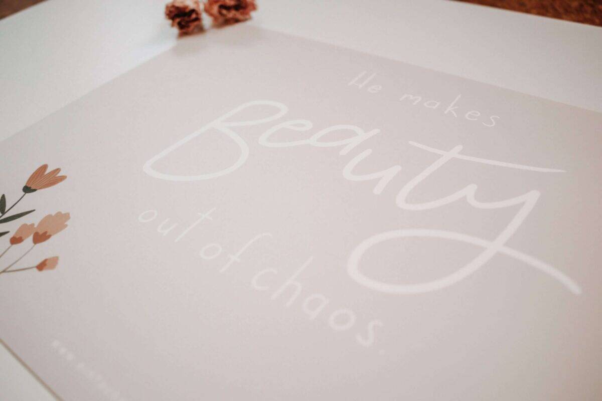 Der Art-Print ,,Beauty out of chaos” im schlichten Design mit moderner Illustration in matter Optik.