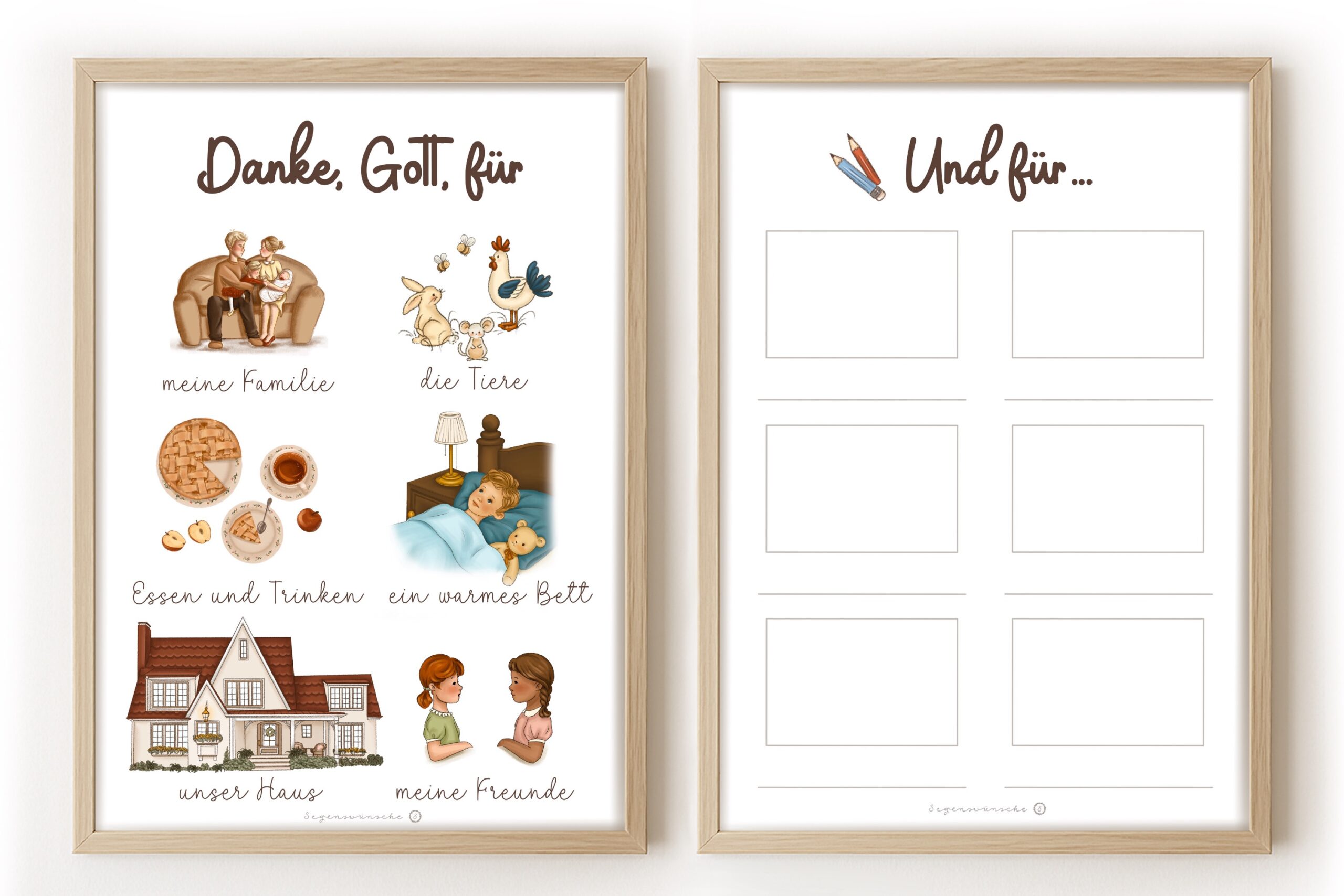 Jedes Dankesanliegen ist mit einer passenden Illustration ergänzt – so lernen Kinder schon früh Dankbarkeit im Alltag.