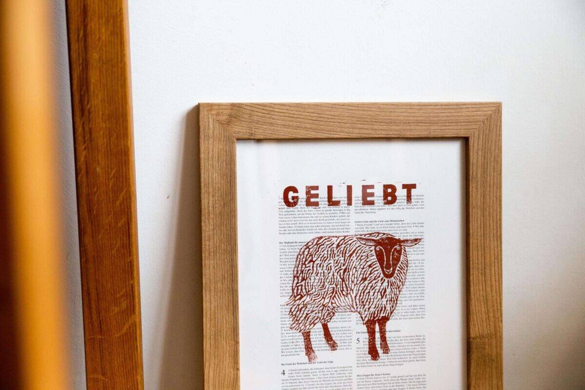 GELIEBT. dieser Kunstdruck soll dich daran erinnern, dass du von Gott bedingungslos und unendlich geliebt bist. das Schaf symbolisiert unsere Identität und erinnert an Jesus als unseren guten Hirten.