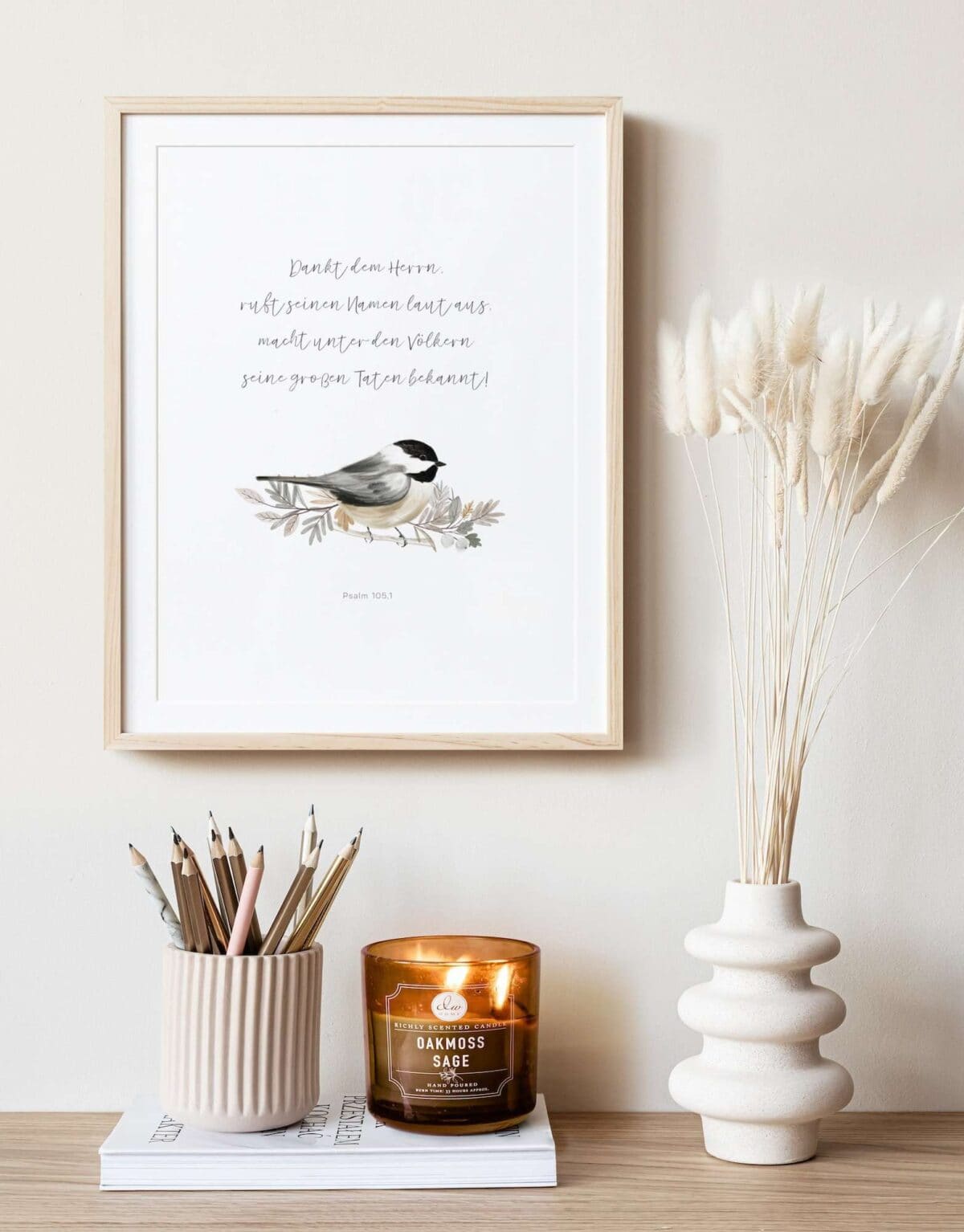 Naturchristliche Wanddekoration mit Bibelvers, geistliche Raumgestaltung, christliche Wohnaccessoires, geistliche Wandbilder.