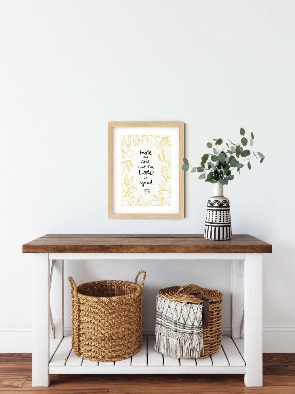 – A4 Druck eines Bibelverses – Psalm 34:8