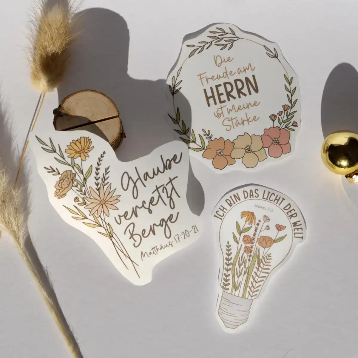 Ich selbst habe solche Sticker auf meinem Laptop und meiner Trinkflasche. Sie sind auch toll auf Notizbüchern, Bibeln, Ordnern oder sogar als motivierende Erinnerung auf dem Spiegel. Sie haften fest und lassen sich leicht aufbringen, sodass du ihre ermutigende Botschaft überall in deinen Alltag integrieren kannst.