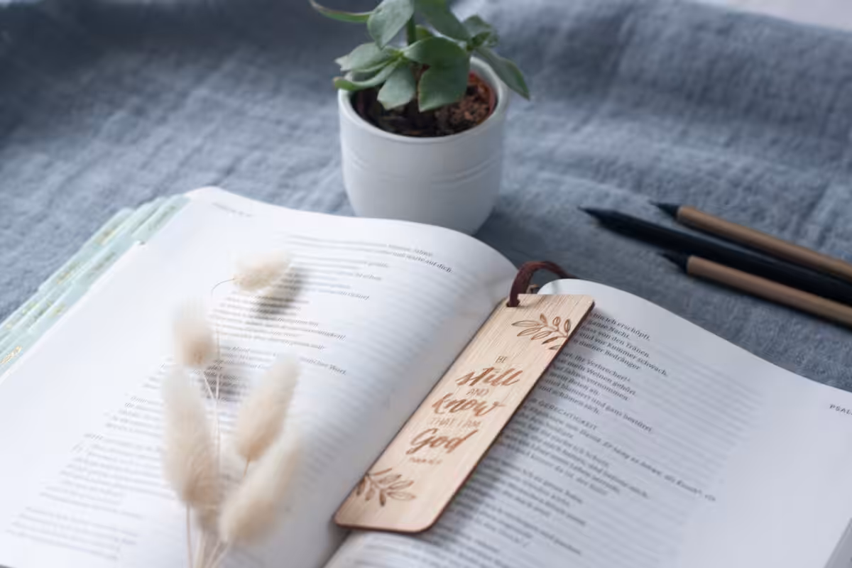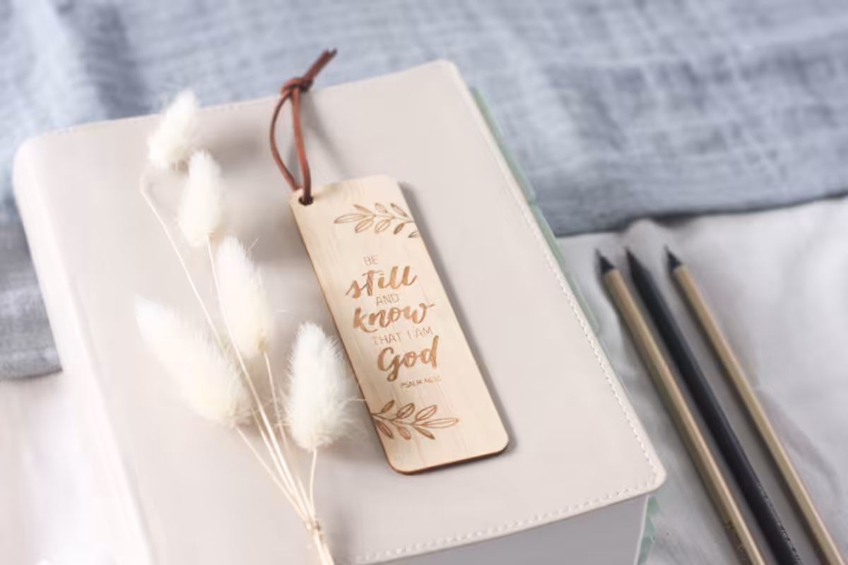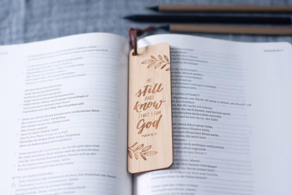 Dieses christliche Lesezeichen mit Bibelvers ist eine stille Erinnerung an Gottes Gegenwart im Alltag.