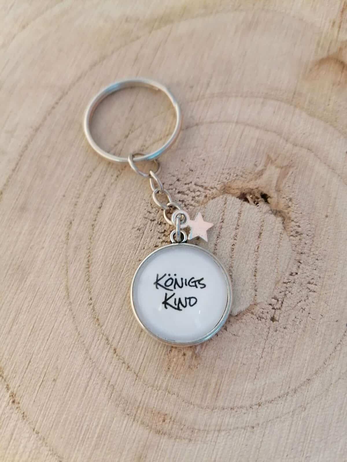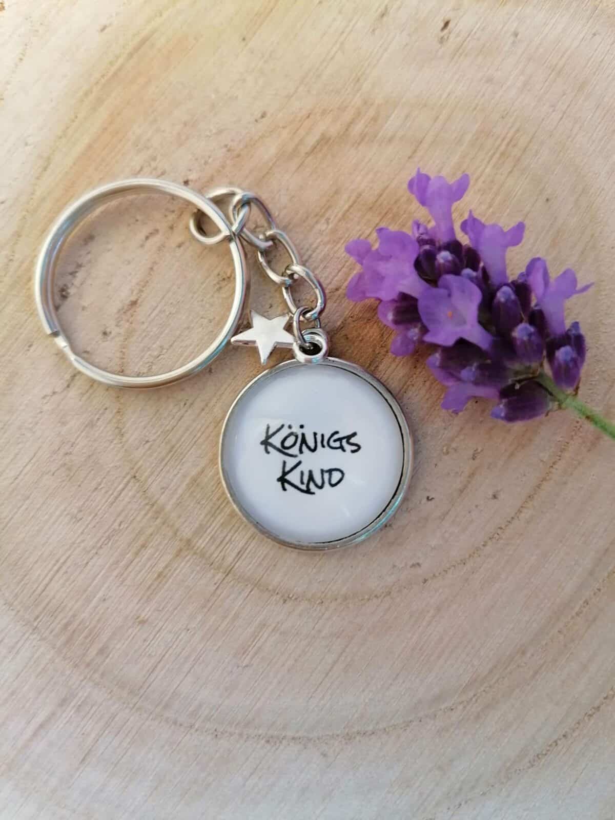Wunderschöner Schlüsselanhänger mit dem Wort “Königskind”, angelehnt an den Bibelvers 1.Johannes 3,1.