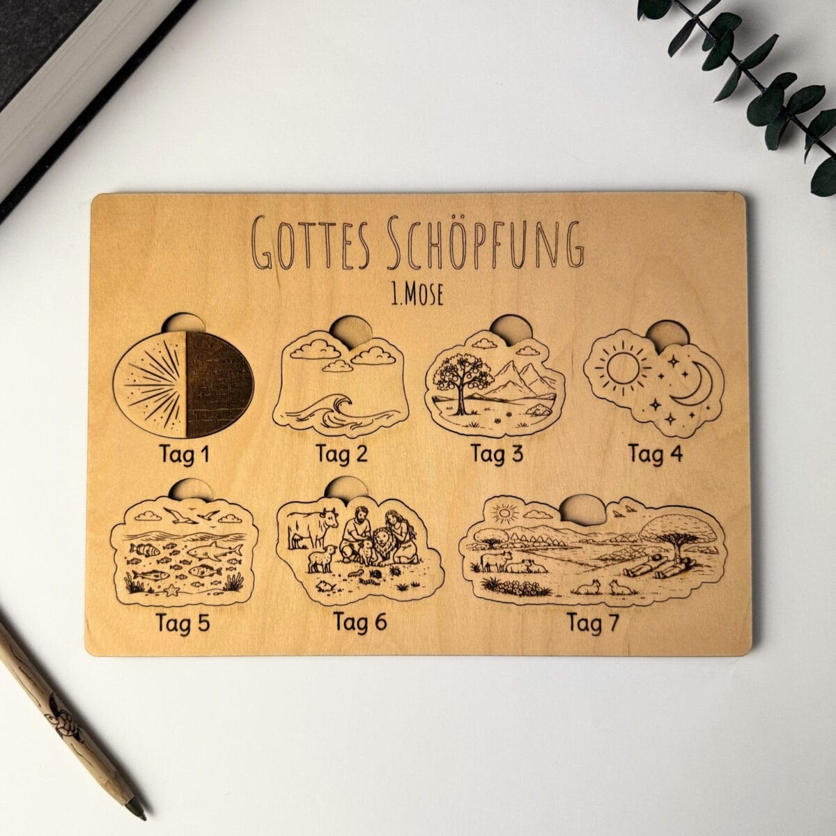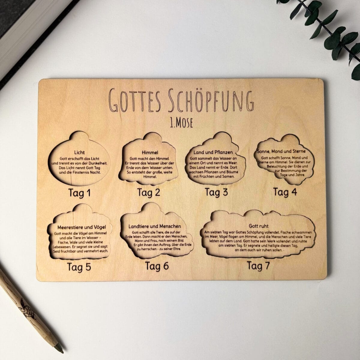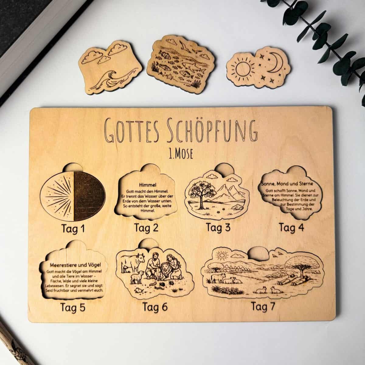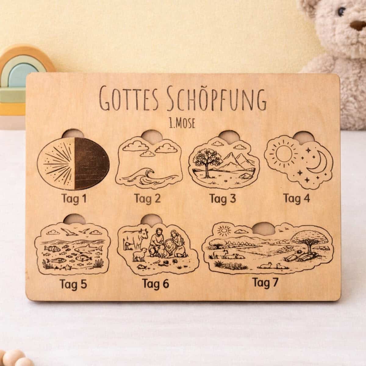 Dieses liebevoll gefertigte Bibel-Holzpuzzle ist das perfekte christliche Geschenk zur Taufe, Geburtstag, Konfirmation oder Weihnachten. Es hilft Kindern (und Erwachsenen), die Schöpfungsgeschichte spielerisch zu lernen und bildlich zu verinnerlichen – ein wunderschönes Lern- und Glaubensgeschenk für Jungen und Mädchen.