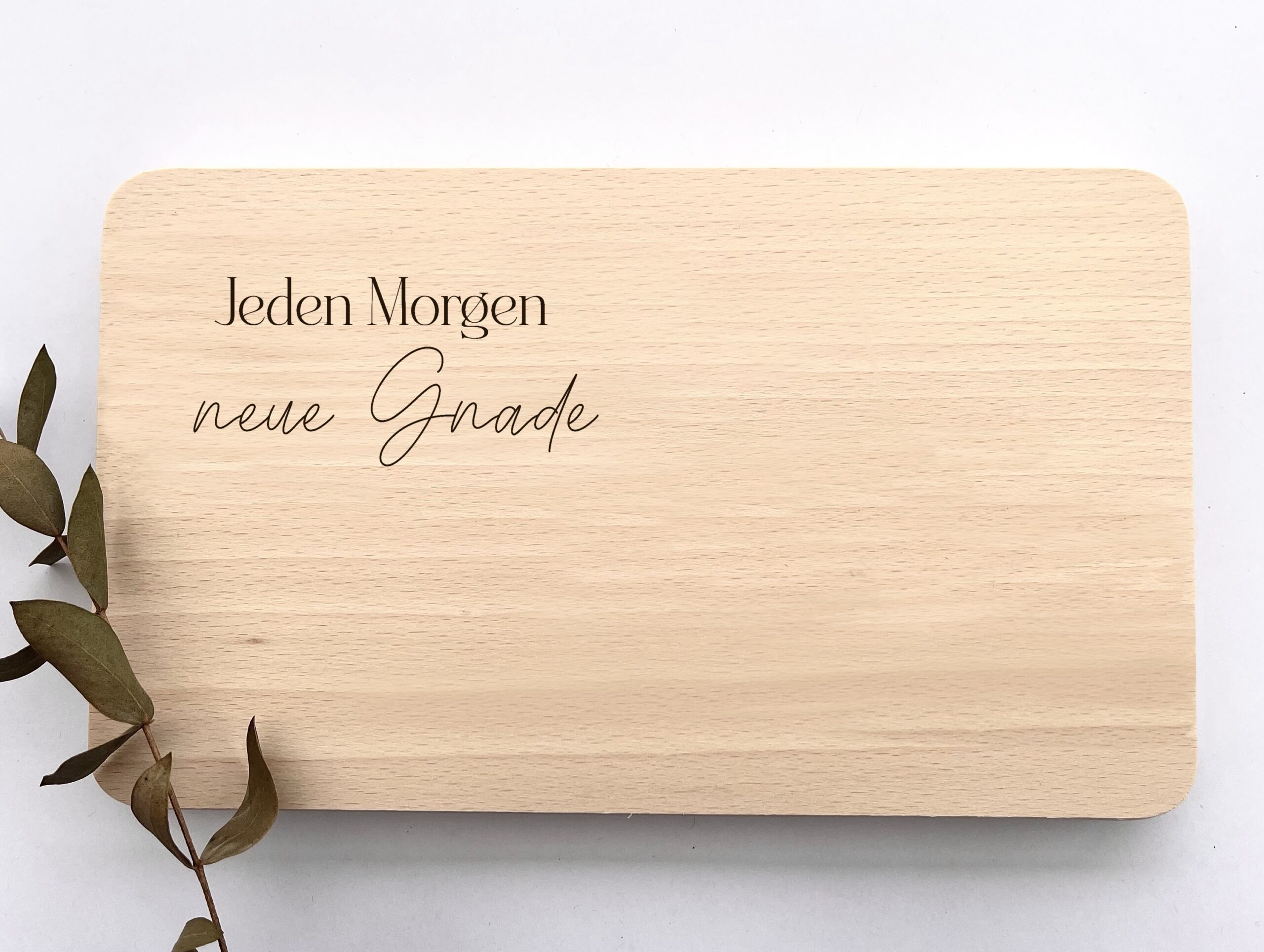 Dieses handgefertigte, Schneidebrett, oder Frühstücksbrett besteht aus massivem Holz und ist hochwertig verarbeitet. Die Aufschrift ist sehr langlebig, da sie in das Brett eingraviert ist.