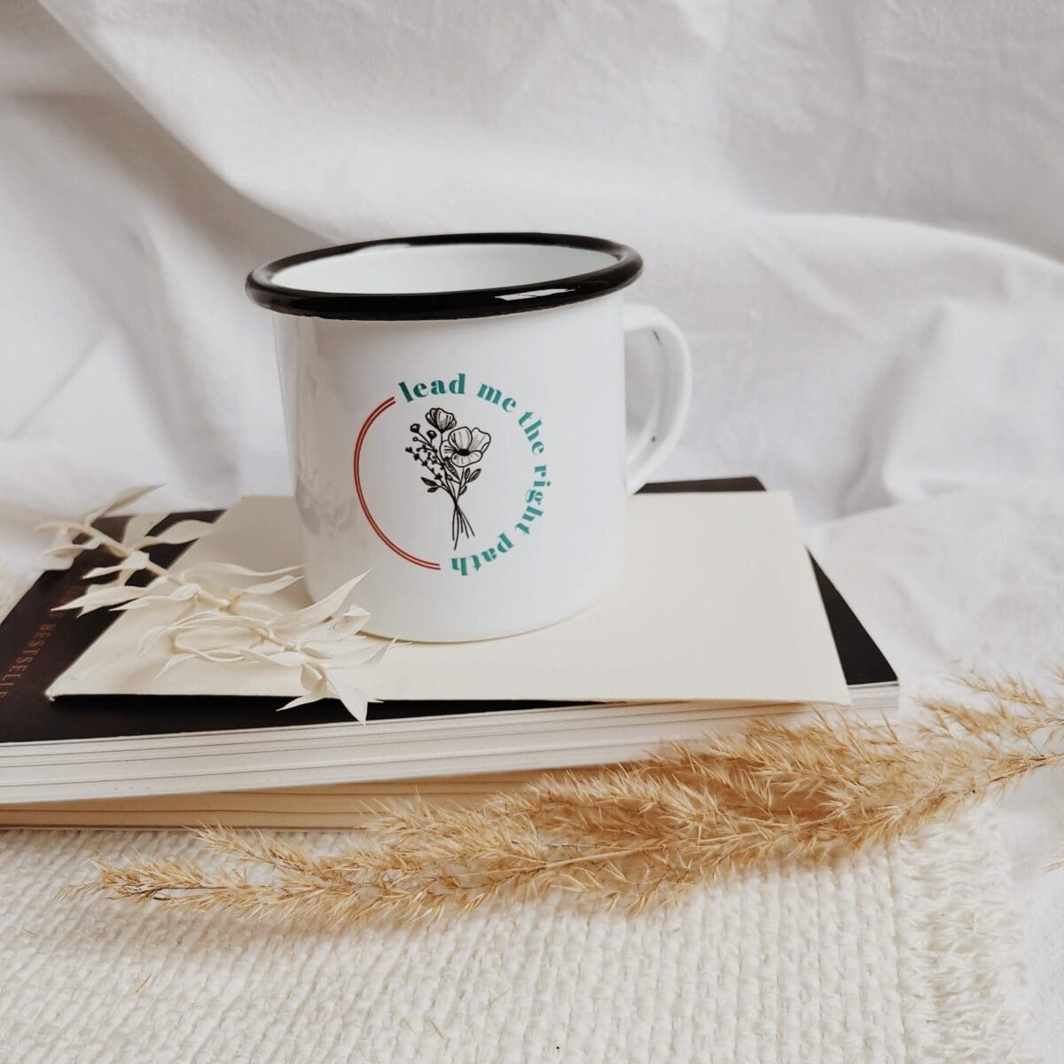 GLAUBE – “Lead me the right path.” Der Spruch aus dem Psalm 5:8 ist von einer Kompass Grafik sowie Blumen untermalt. Der perfekte Mutmacher für dich oder als Geschenk.