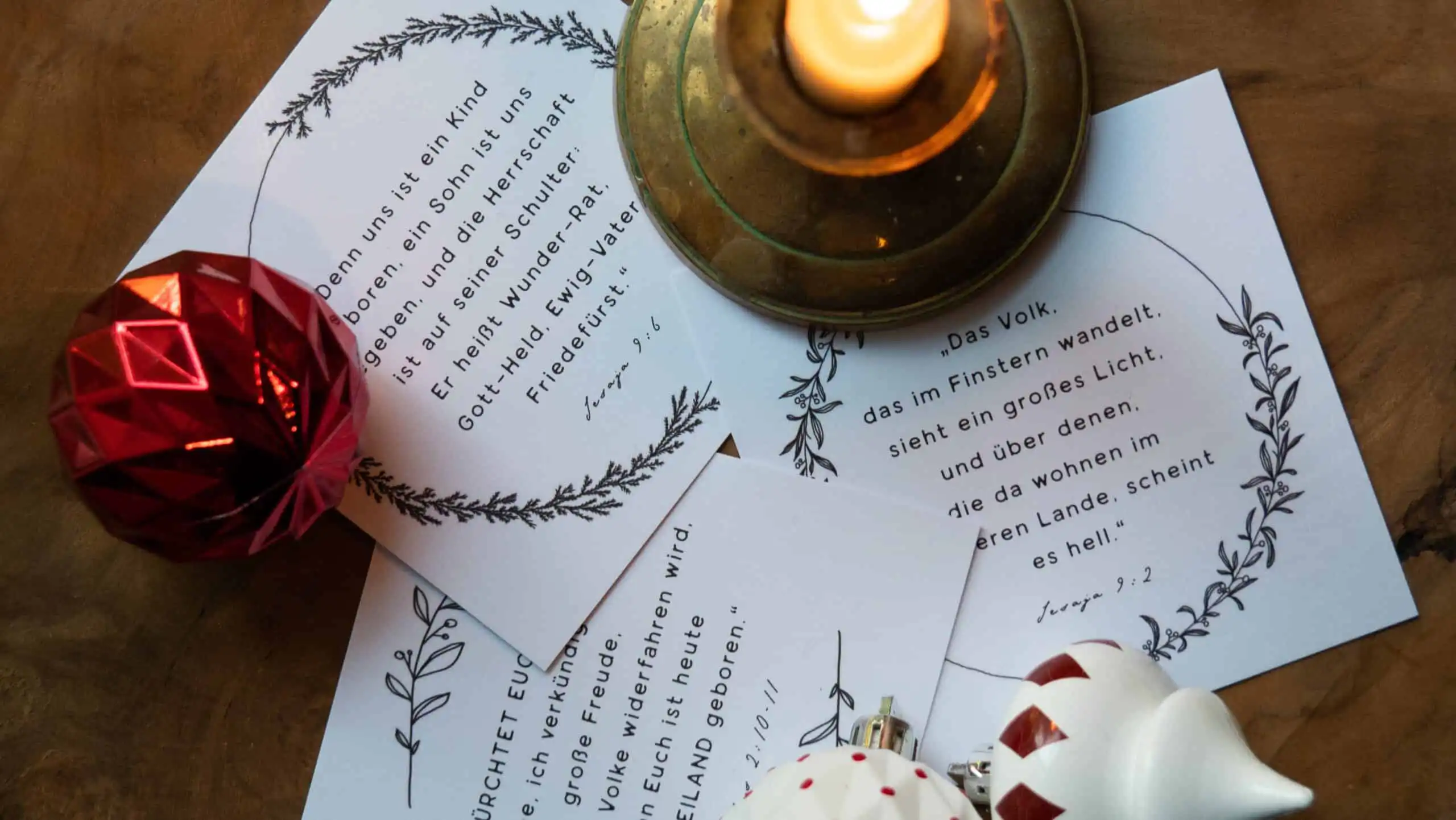 -  “Denn uns ist ein Kind geboren, ein Sohn ist uns gegeben, und die Herrschaft ist auf seiner Schulter: Er heißt Wunder-Rat, Gott-Held, Ewig-Vater, Friede-Fürst.”