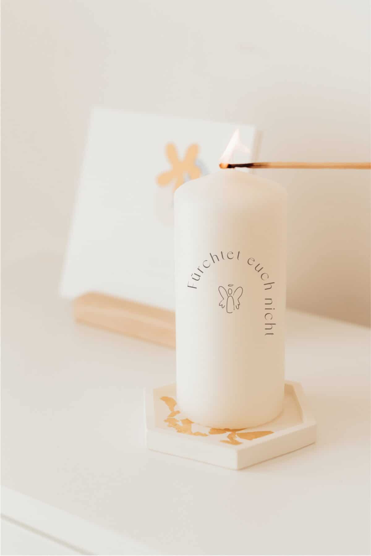 Stellen Sie die Kerze immer auf eine hitzebeständige Unterlage und halten Sie sie fern von brennbaren Materialien.