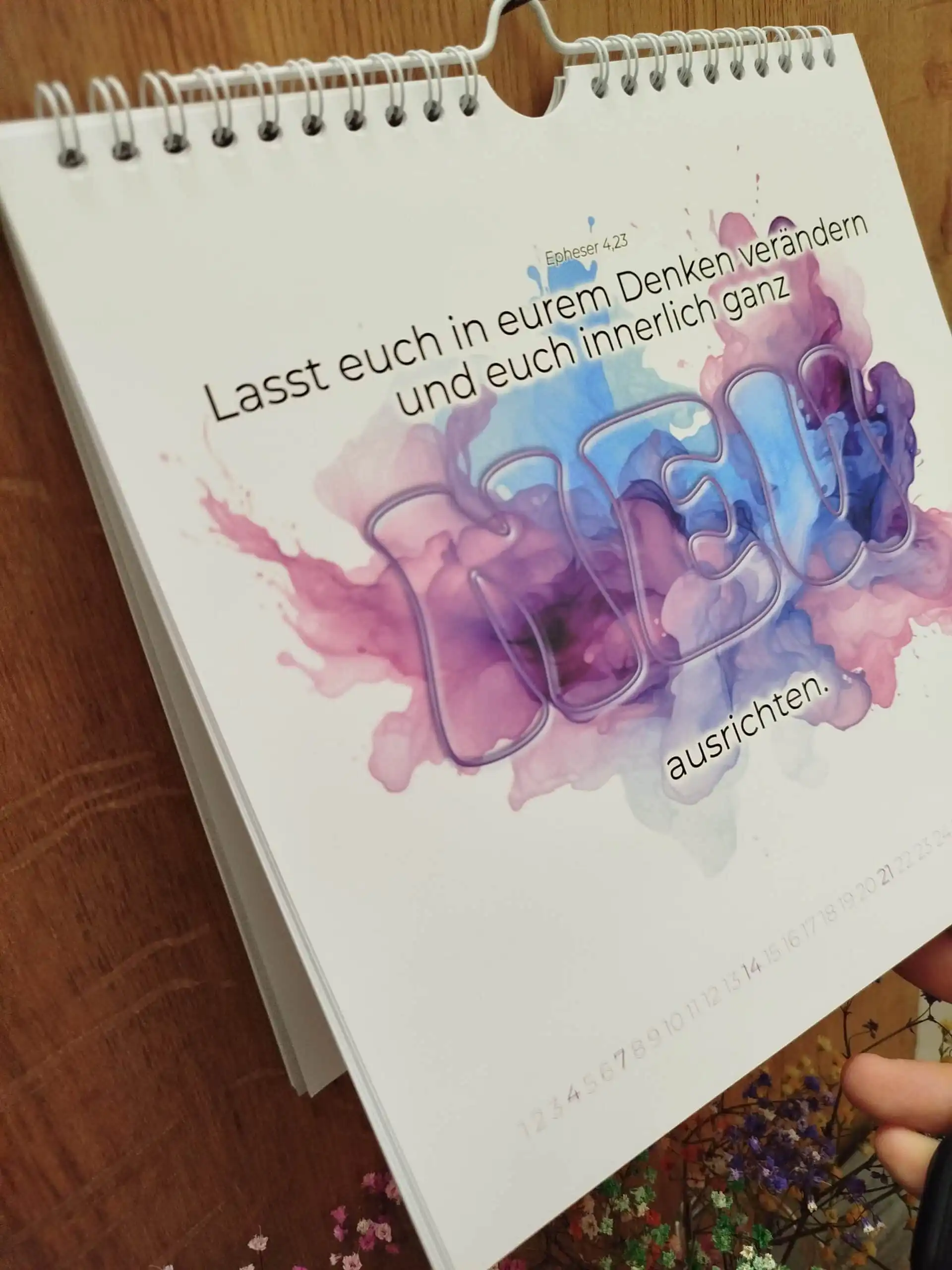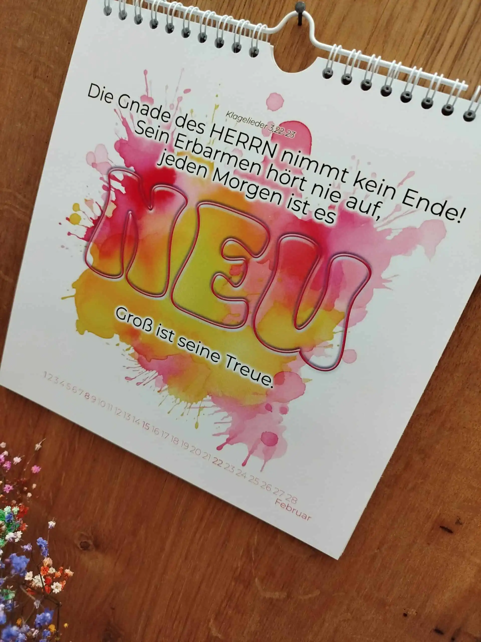 Passend zur Jahreslosung 2026 findest du in diesem Kalender verschiedene Bibelverse mit “NEU”.