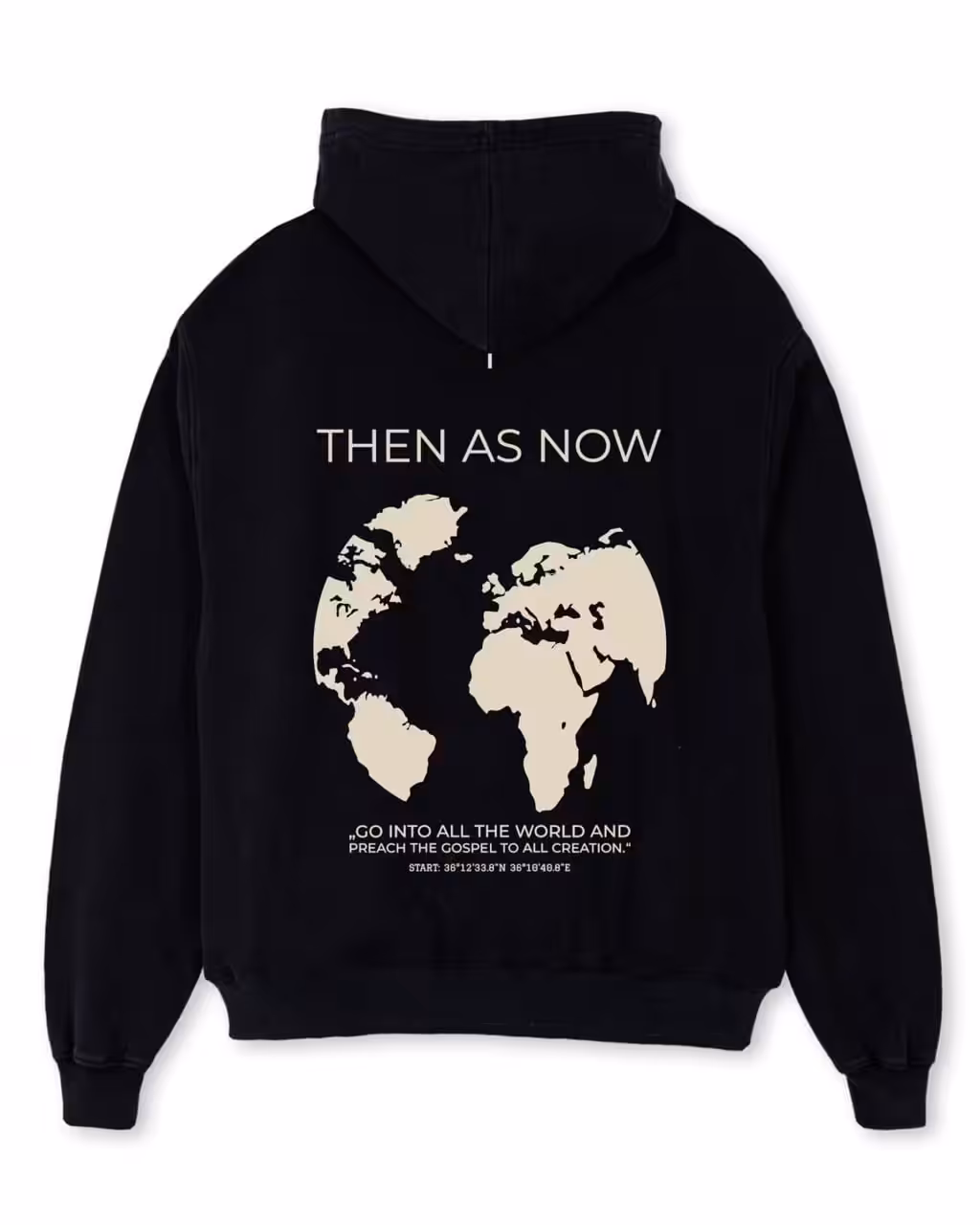 Erlebe den Heavy Oversize Hoodie – “THEN AS NOW” und fühle die Geschichte. Hergestellt aus Bio-Baumwolle mit der Grammatur 470 g/m², wird dir ein schweres, hochwertiges Oversize Hoodie geboten.
