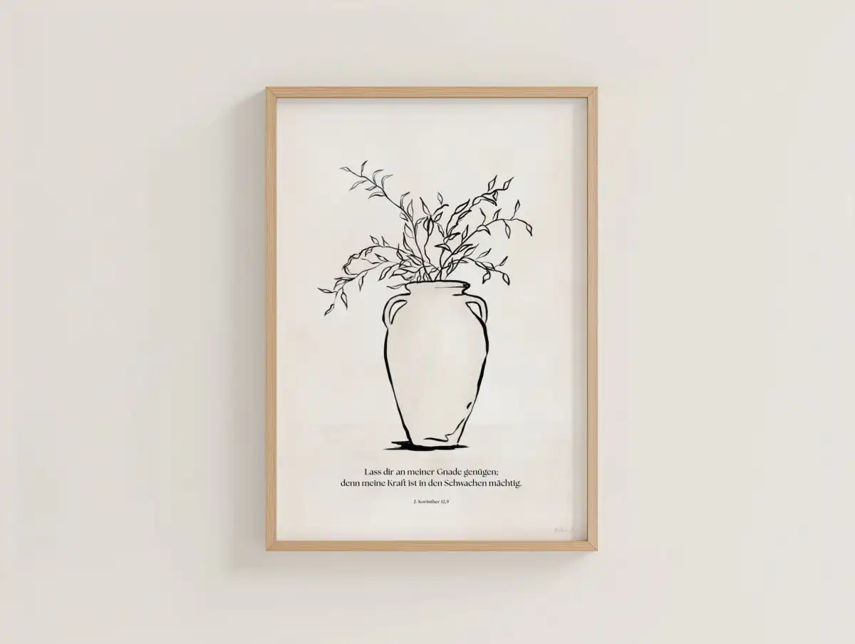 Poster mit einem Bibelvers aus 2. Korinther 12,9.
