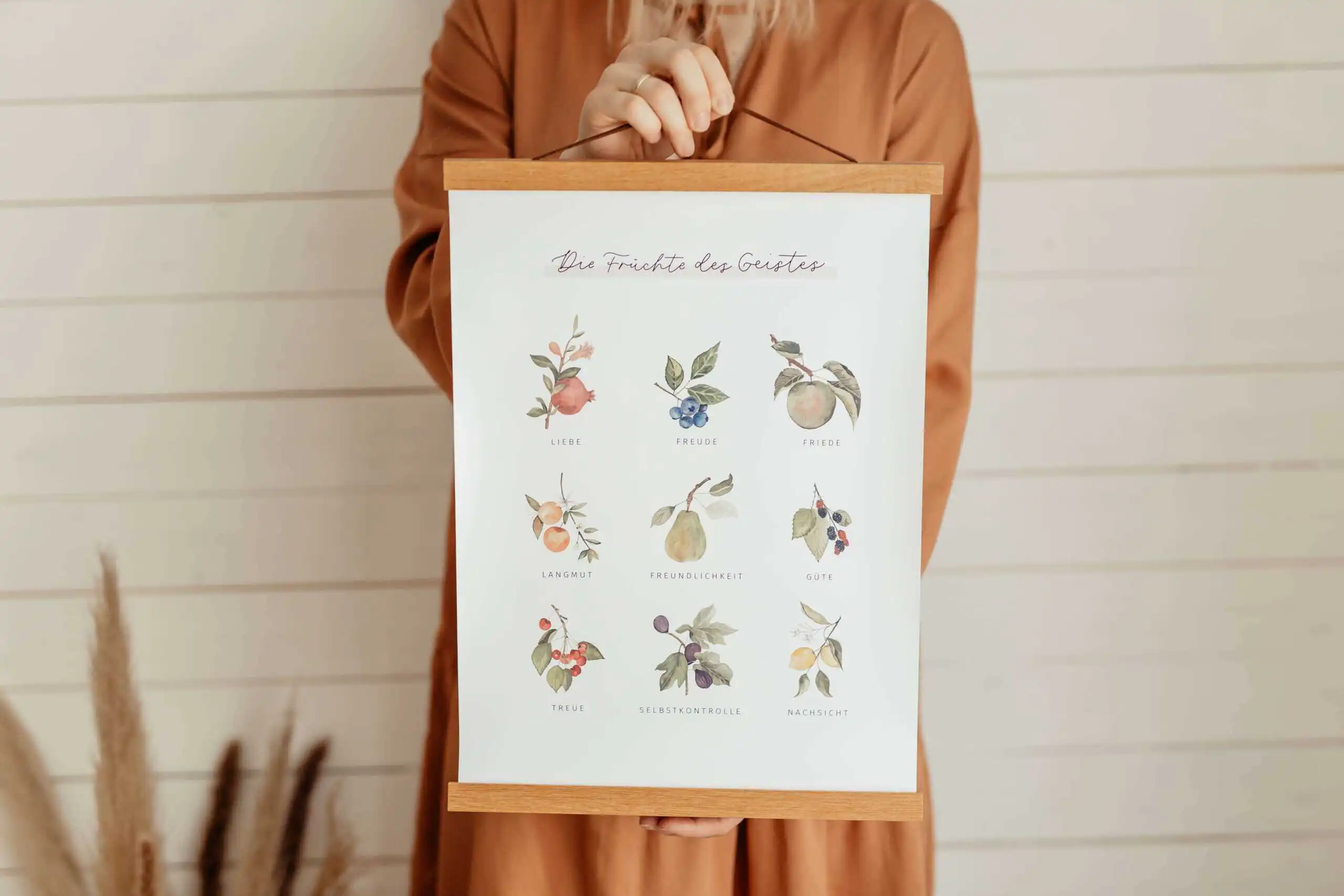 Diesen Fine-Art-Print könnt ihr im Wohnzimmer, Schlafzimmer, Kinderzimmer oder Küche aufhängen, wo ihr täglich an die Früchte des Geistes erinnert werdet.