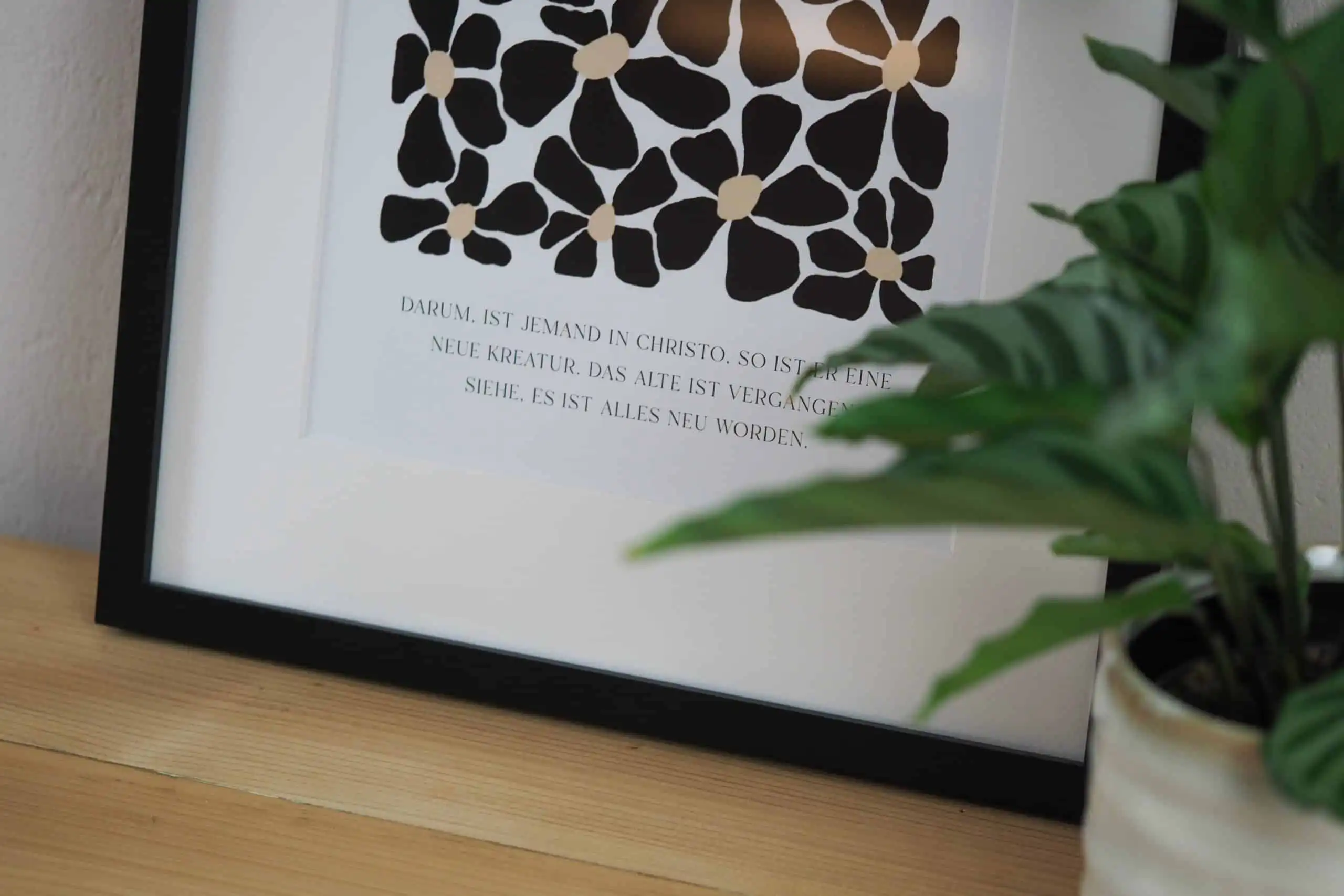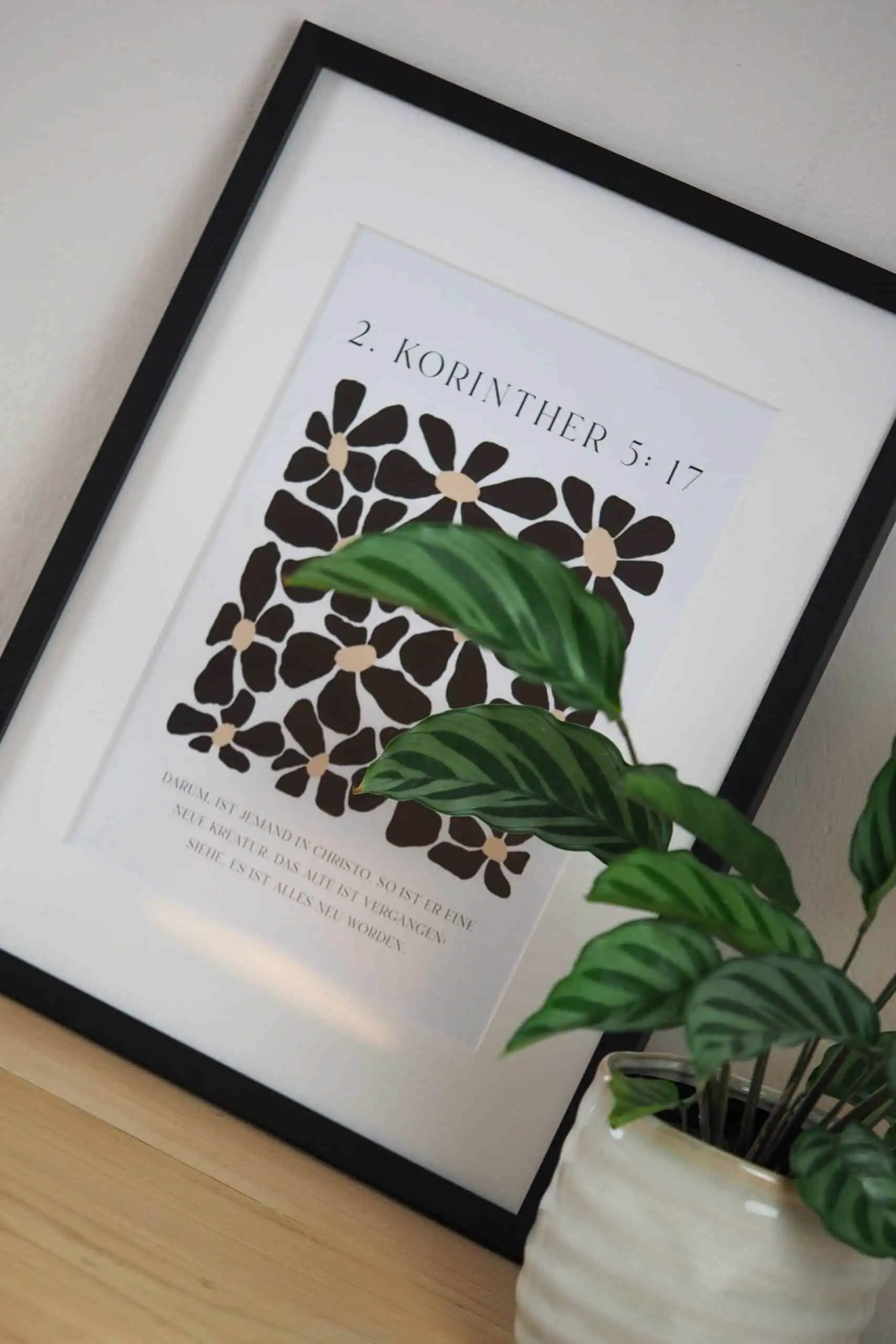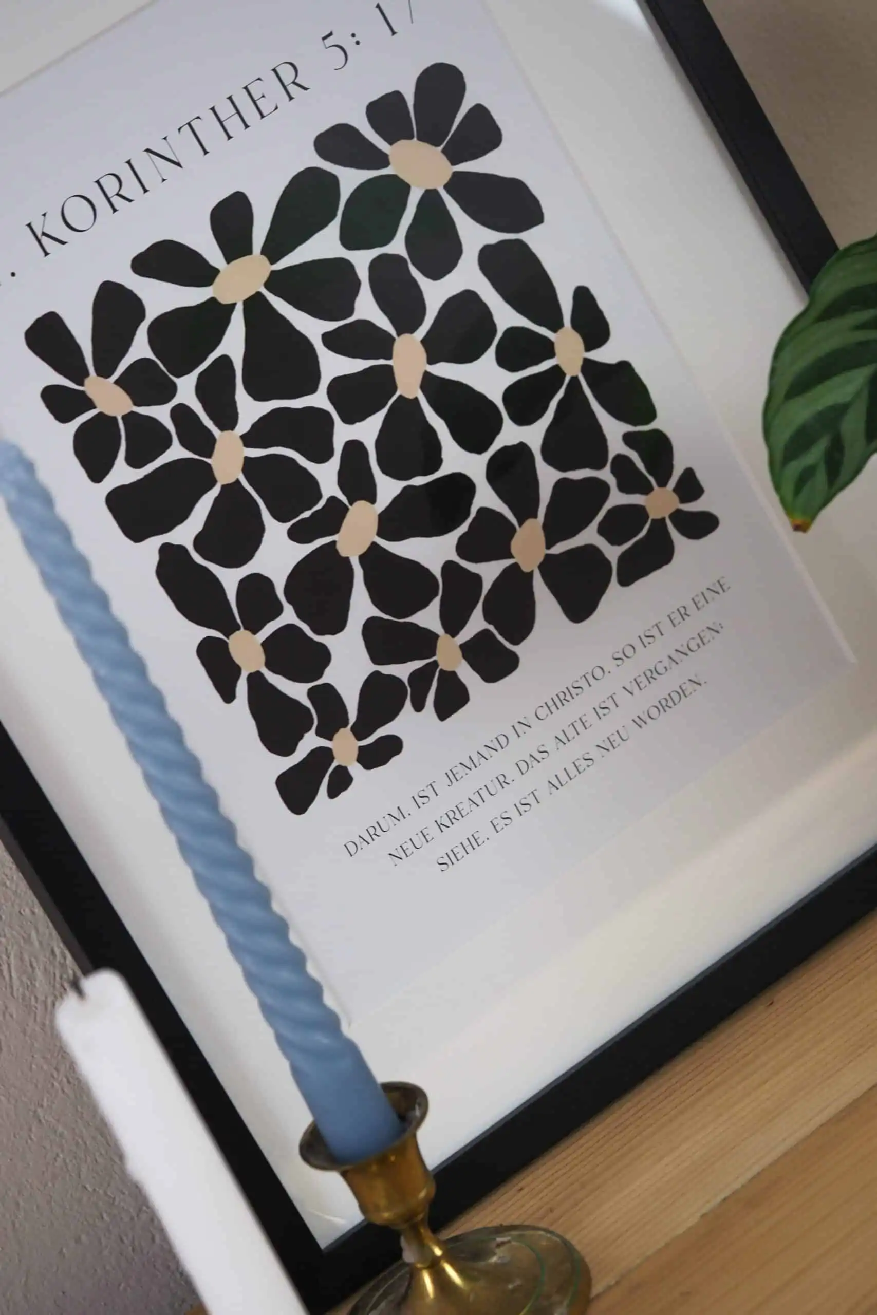 Poster im “Matisse Style”: “Darum ist jemand in Christo, so ist er eine neue Kreatur. Das Alte ist vergangen, siehe es ist alles neu geworden.” (2. Korinther 5, 17)