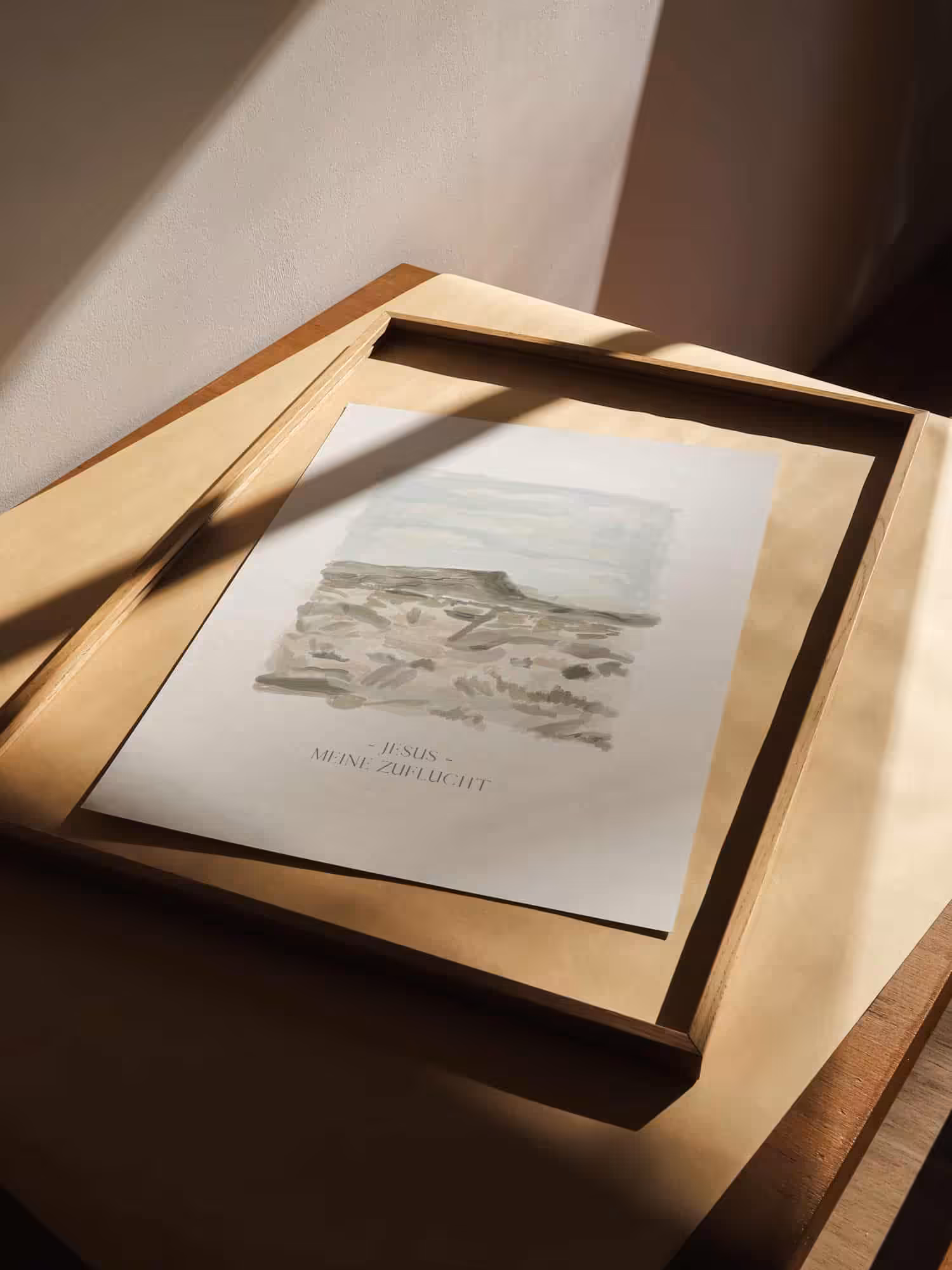 Dieses Poster erinnert daran, dass Jesus unsere Zuflucht ist – egal, welche Herausforderungen oder Lebenslagen wir durchlaufen. Er ist unser sicherer Ort, der Halt gibt, wenn wir uns schwach fühlen. Die Botschaft schenkt Geborgenheit und Hoffnung – ein täglicher Reminder für Zuhause. Die sanften Beige- und Grautöne sowie das abstrakte Landschaftsmotiv machen den Kunstdruck zu einem ästhetischen Highlight in modernen, skandinavischen Wohnstilen. Ob im Wohnzimmer, Schlafzimmer oder Büro, dieses Poster schafft eine ruhige und inspirierende Atmosphäre. Auch ideal als Geschenk zum Geburtstag, Einzug, zur Hochzeit oder zu Weihnachten.