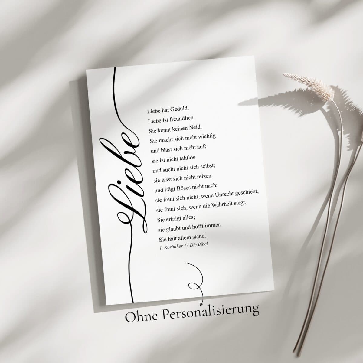 Ein stilvolles, minimalistisches Wandbild mit einem der bekanntesten Bibelverse über die Liebe.