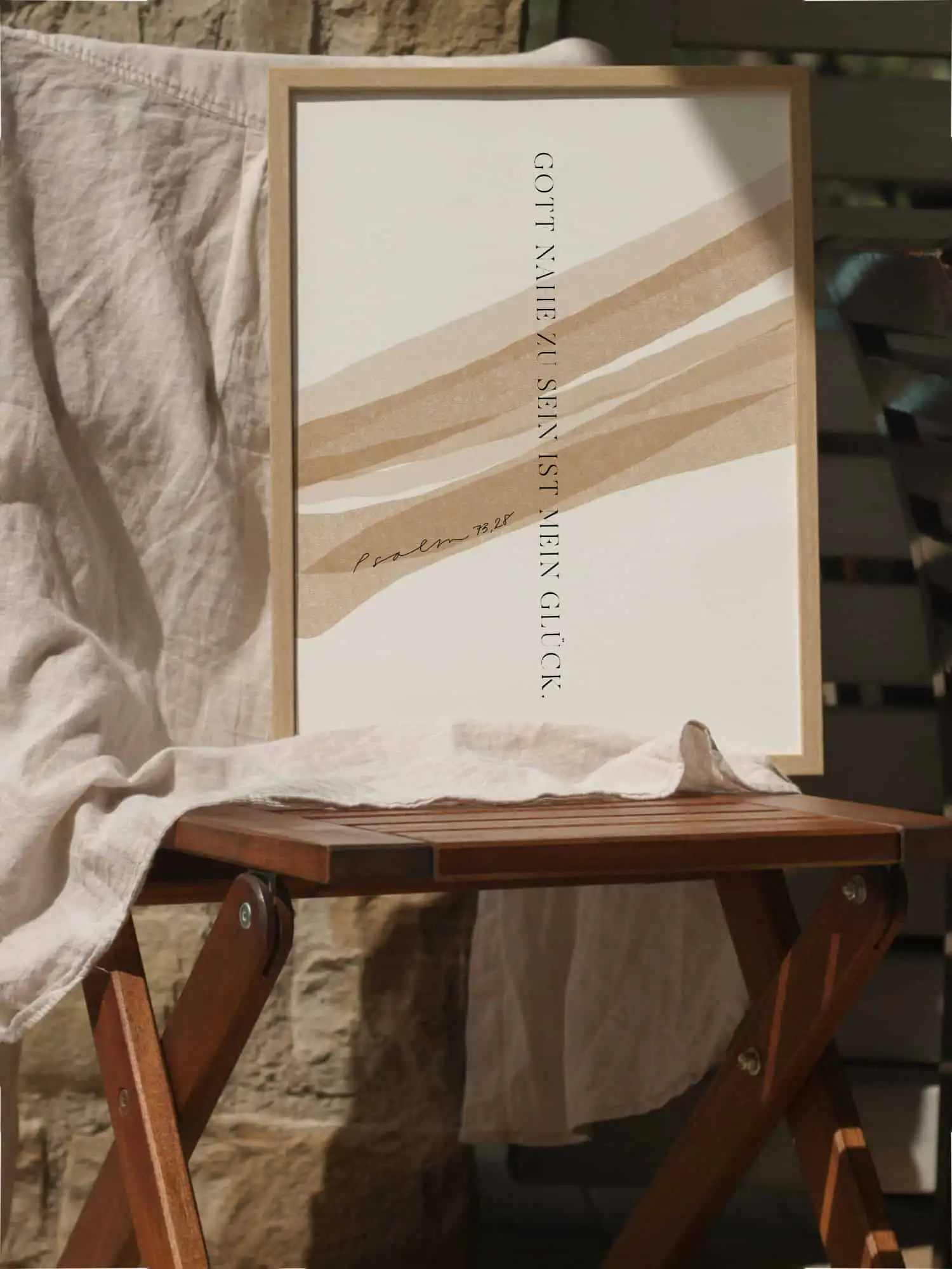 Christliches Poster „Gott nahe zu sein ist mein Glück“ (Psalm 73,28) in Beige-Tönen. Ästhetischer Kunstdruck, moderne Wanddeko & besonderes Geschenk. Dieser Bibelvers erinnert daran, dass wahres Glück nicht im Materiellen liegt, sondern in der Nähe zu Gott. Mit den warmen Beige- und Creme-Tönen sowie der minimalistischen Typografie fügt sich dieses Poster harmonisch in moderne, skandinavische Wohnstile ein. Ideal für Wohnzimmer, Schlafzimmer oder Büro – und ein inspirierendes Geschenk für Einzug, Geburtstag, Hochzeit oder Weihnachten.