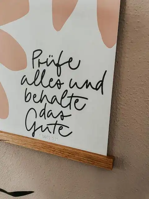 Poster zur Jahreslosung 2025 aus 1. These. 5,21. Prüfe alles und behalte das Gute! Das moderne Design in harmonischen Farben macht es zu einem stilvollen Blickfang in jedem Raum – sei es zu Hause, im Büro oder in den Gemeinderäumen. Ob für dich selbst oder als Geschenk: Dieses Poster erinnert dich täglich daran, auf das Wesentliche zu schauen und Gottes Gegenwart in deinem Leben zu suchen.