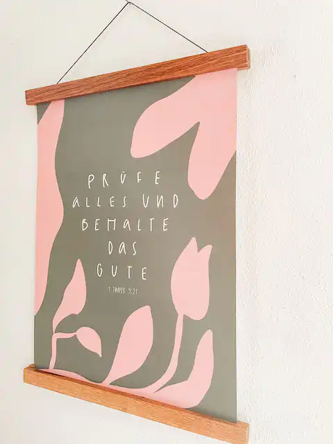 Poster zur Jahreslosung 2025 aus 1. These. 5,21. Prüfe alles und behalte das Gute! Das moderne Design in harmonischen Farben macht es zu einem stilvollen Blickfang in jedem Raum – sei es zu Hause, im Büro oder in den Gemeinderäumen. Ob für dich selbst oder als Geschenk: Dieses Poster erinnert dich täglich daran, auf das Wesentliche zu schauen und Gottes Gegenwart in deinem Leben zu suchen.