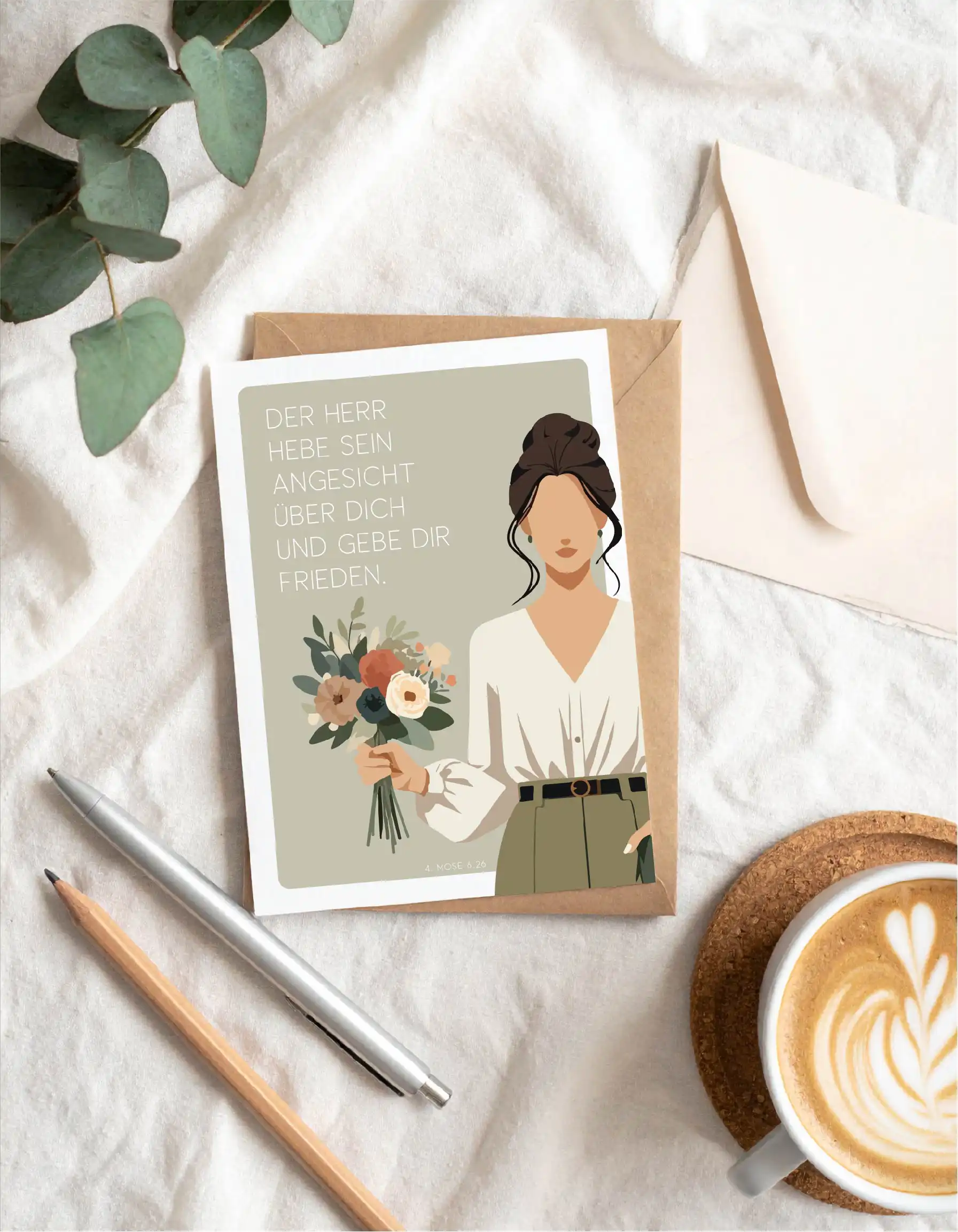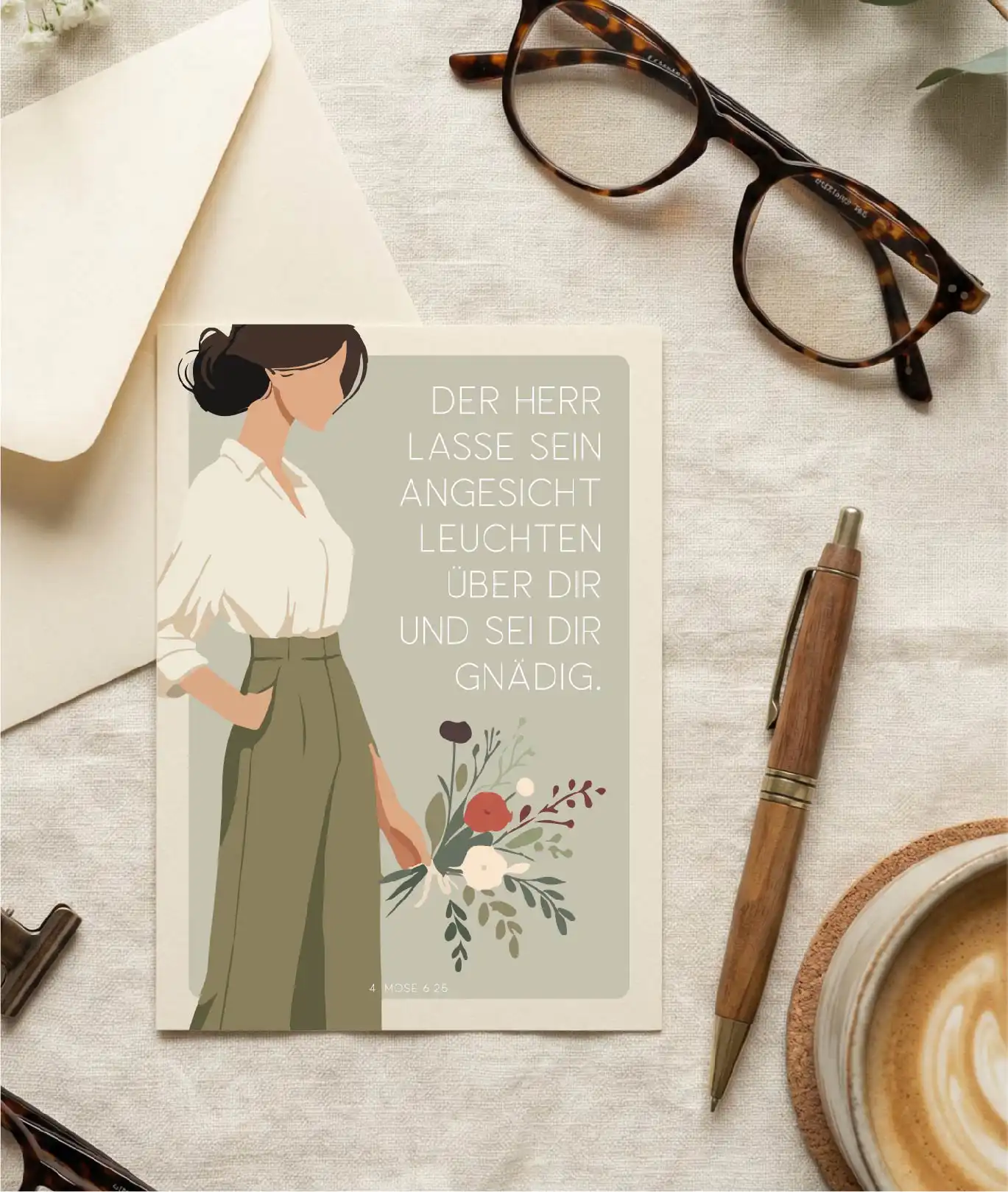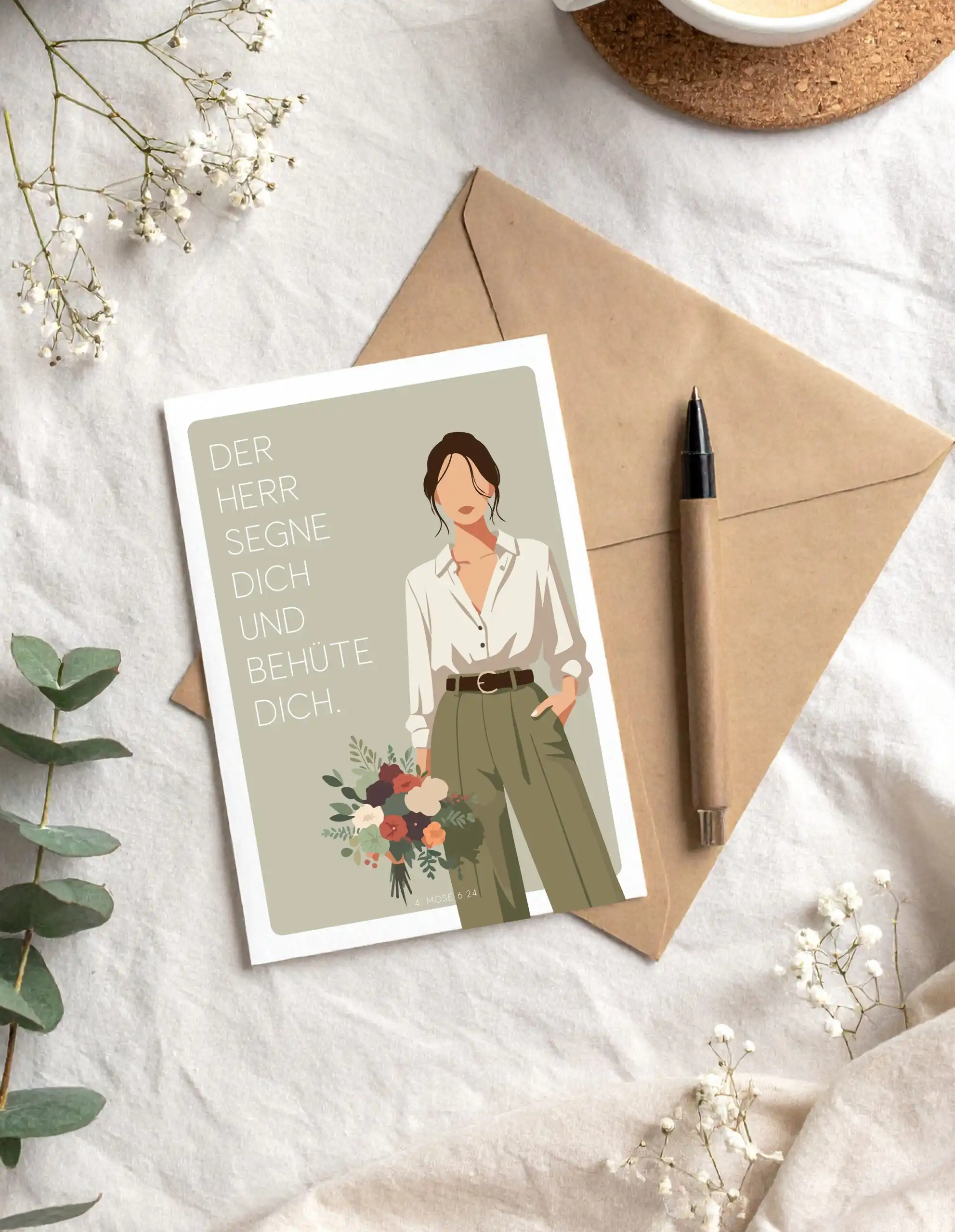 „Der Herr segne dich und behüte dich.“ – Eine Karte, die Gottes Schutz und Begleitung zuspricht.