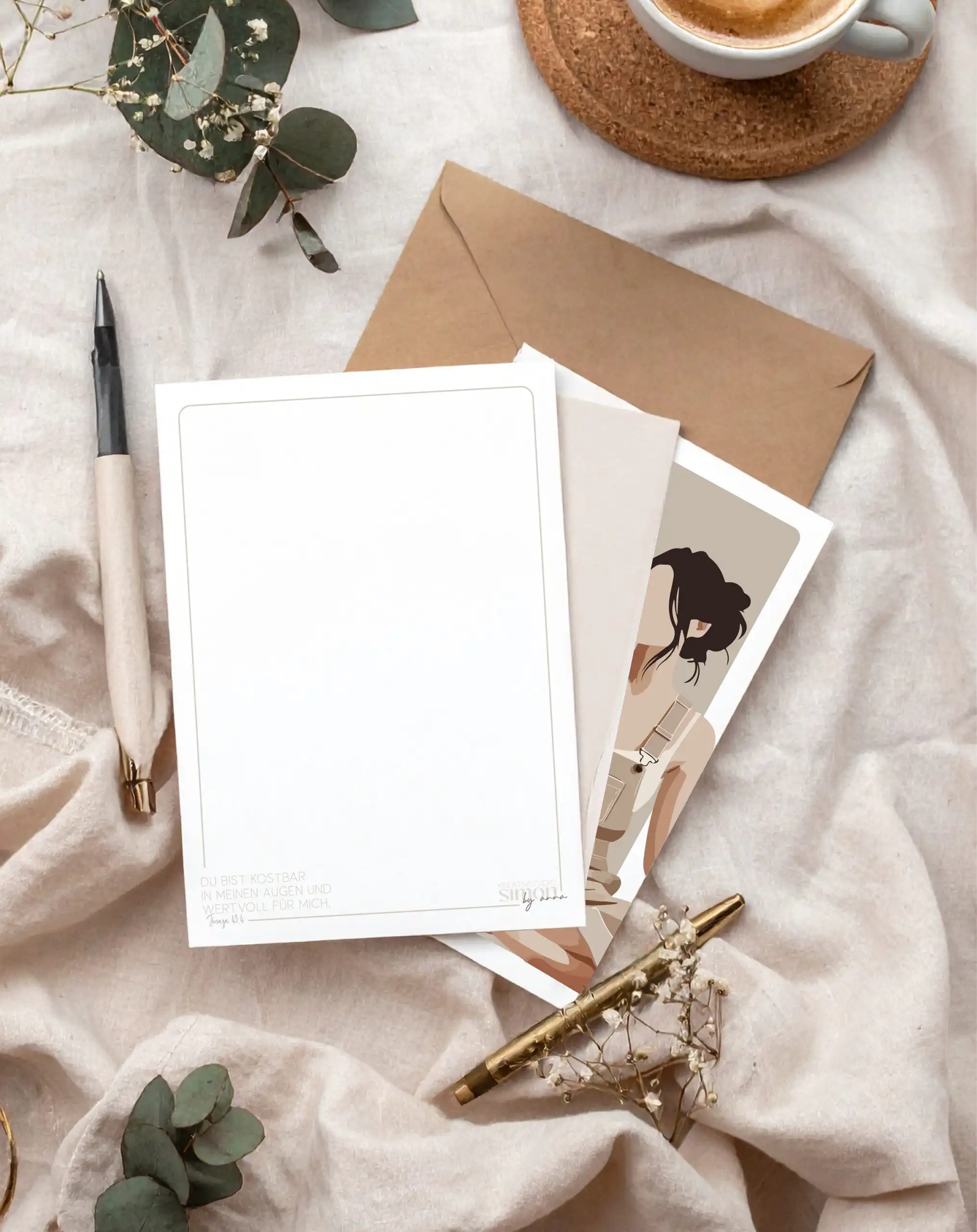 Rückseite blanko für persönliche Worte, mit dezentem Bibelvers im Eck