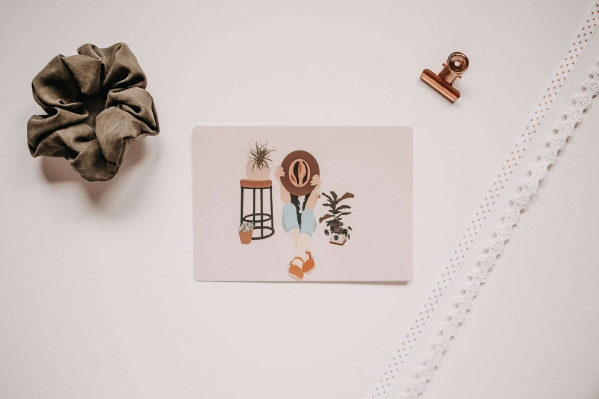 Die Karte ,,plantlady” im schlichten Design mit moderner Illustration.