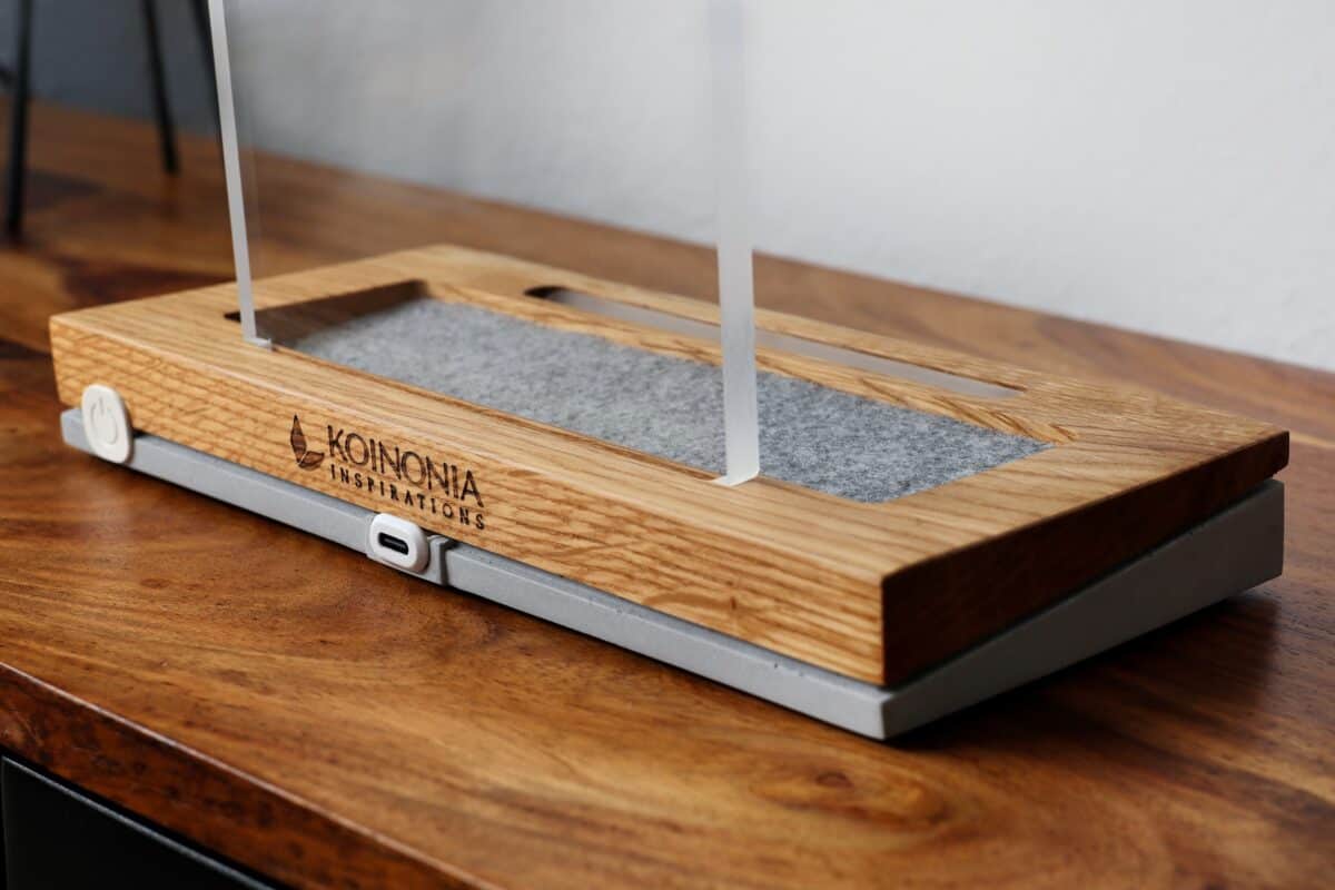 Dieser Bibelhalter ist mehr als nur ein dekoratives Element – er ist ein Statement. Er offenbart das Fundament deines Lebens. Die integrierte dimmbare Beleuchtung lenkt die Aufmerksamkeit auf die Bibel und lässt sie im Raum herausstechen. Gleichzeitig erzeugt sie ein angenehmes Ambiente.