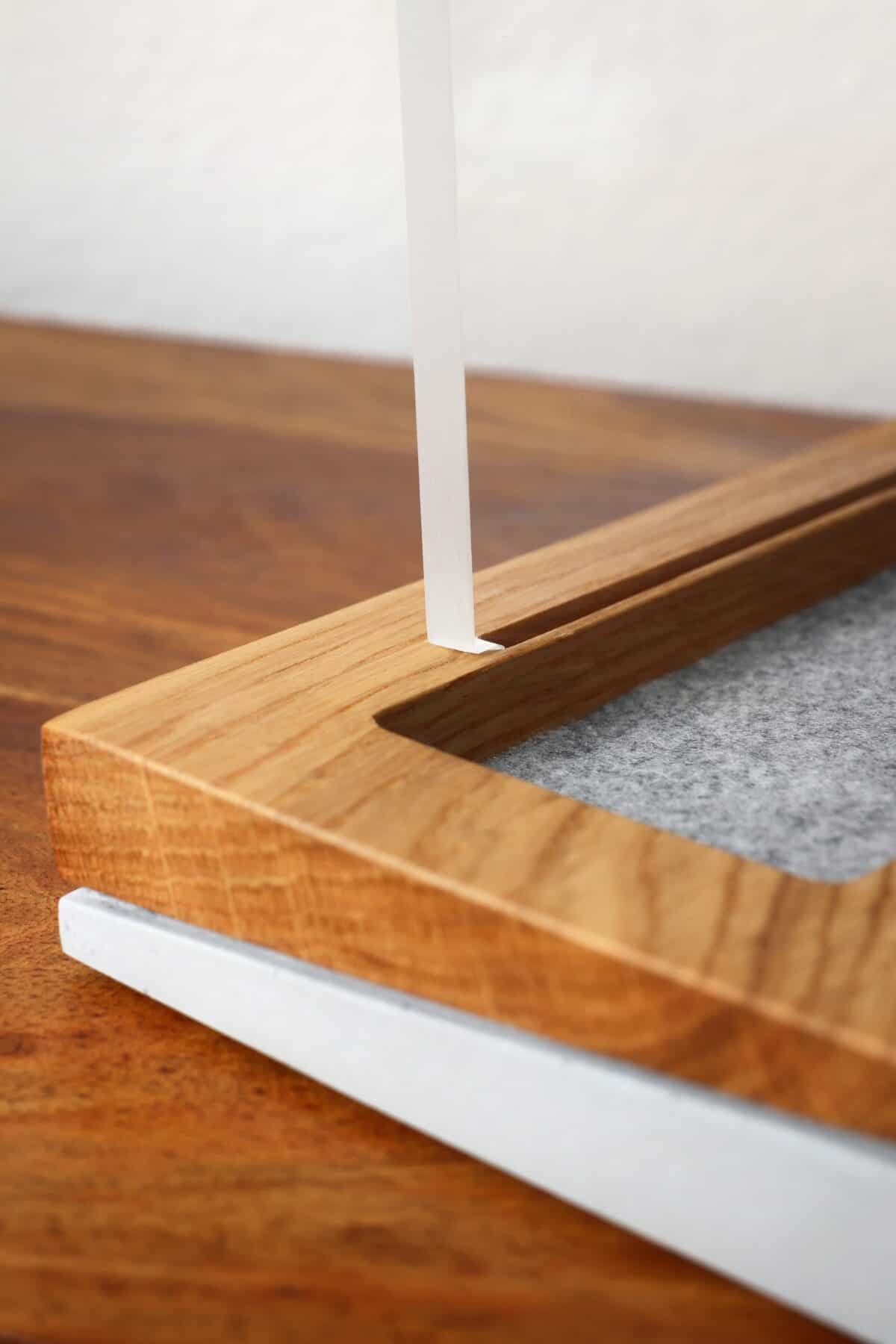 Material: pigmentierter Designbeton, geöltes Eichenholz, Plexiglas