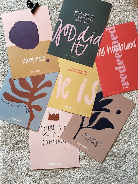 • 12 Monatsblätter mit stärkenden Bibelversen und kurzen Impulsen auf der Rückseite für den Alltag