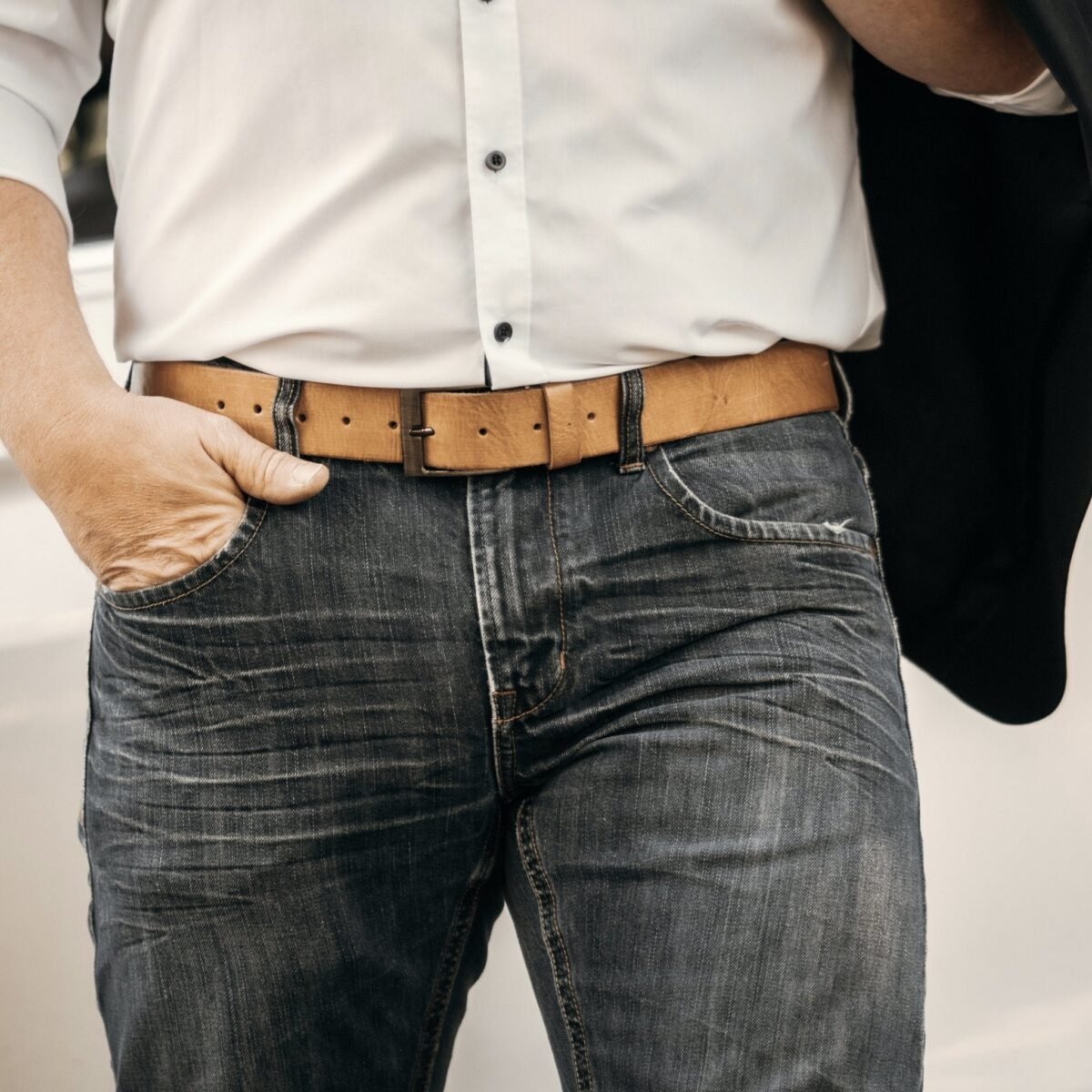Dieser in Handarbeit gefertigte Gürtel aus strapazierfähigem Rindsleder vereint Funktionalität mit zeitlosem Design. Einfach anziehen und nie wieder ablegen. Kombiniert mit der anthrazit-farbenen Schnalle lässt sich der Gürtel zu den meisten Alltagsoutfits tragen.