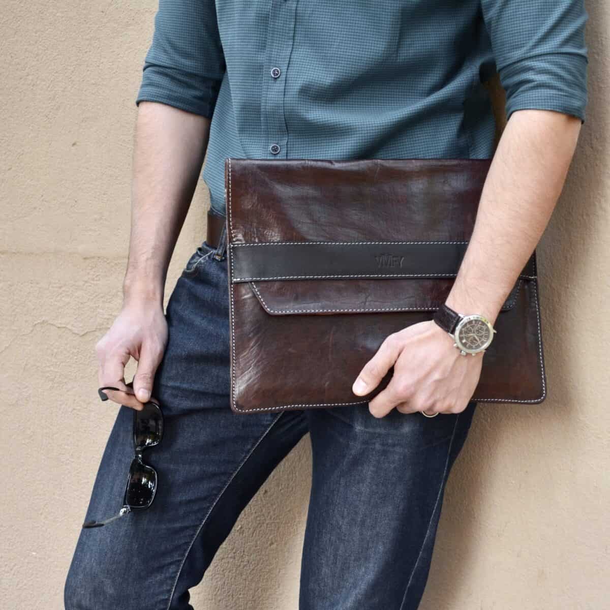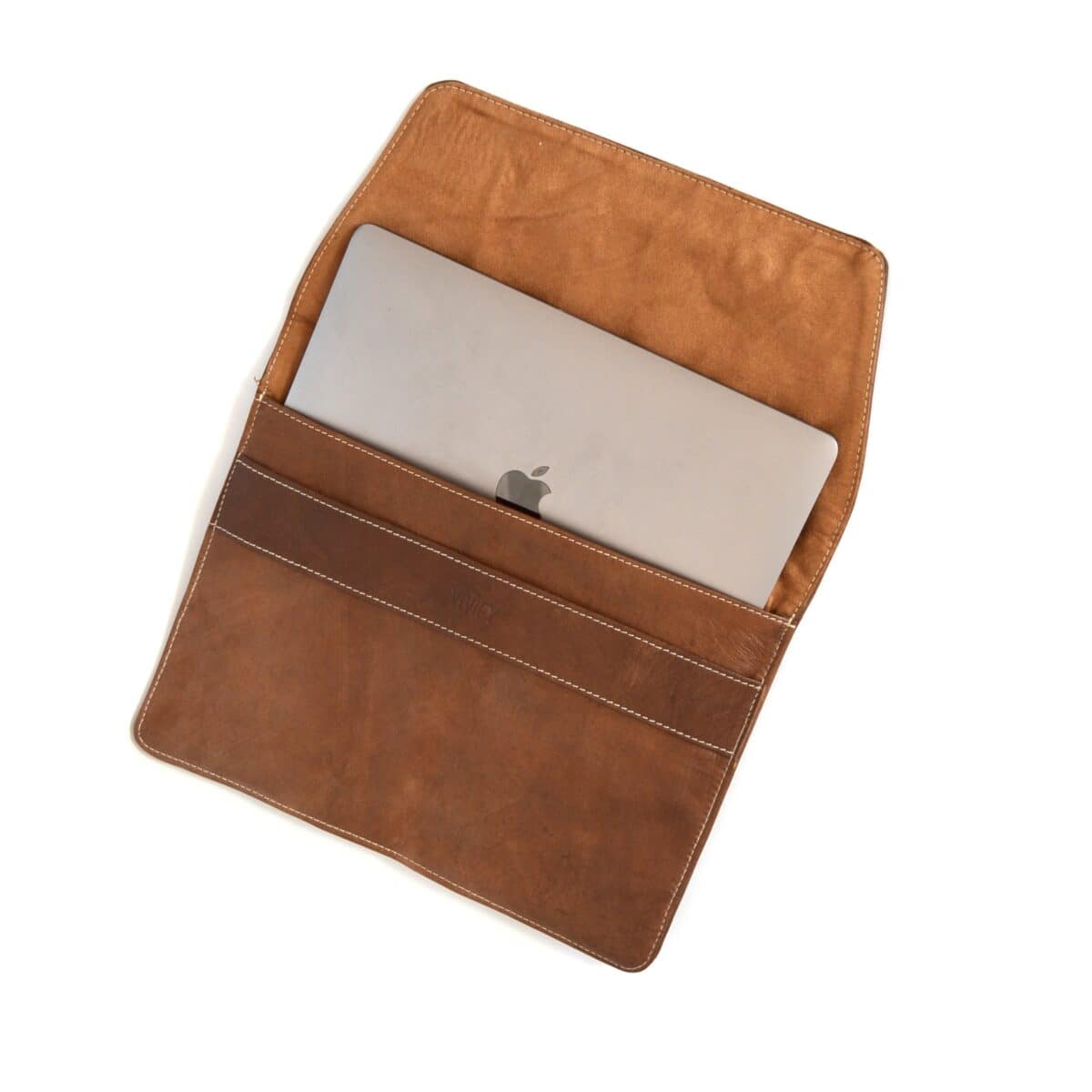 Das handgefertigte Laptop Sleeve aus hochwertigen Ziegen- und Rindsleder sorgt für einen eleganten Auftritt im Büro, in der Uni oder am Flughafen. Dieser besondere Hingucker bietet dir neben einem Fach für dein Laptop oder Tablet ein weiteres großes Fach am Rücken. Dort finden dein Smartphone oder Kabel und Adapter Platz.