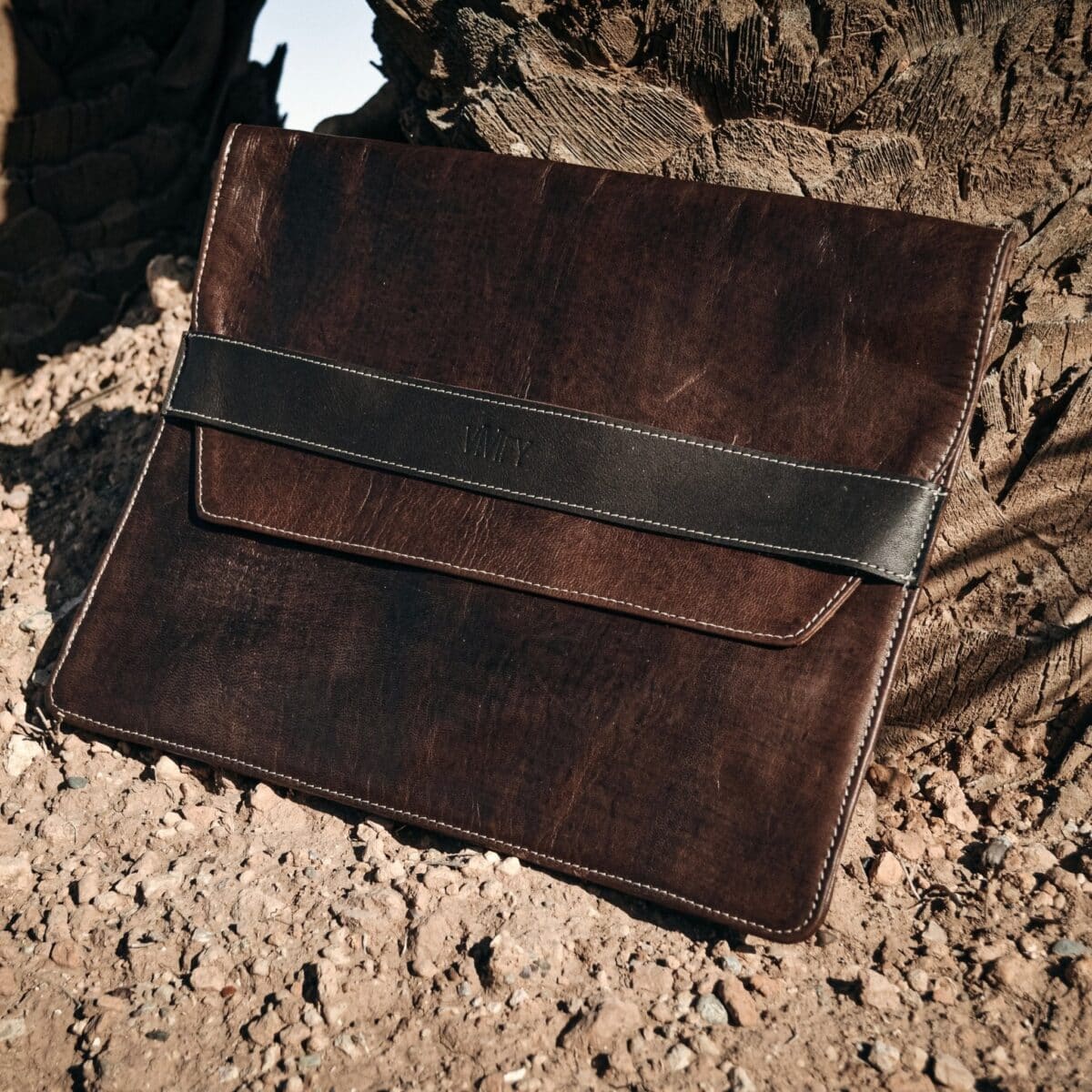 Dieses Laptop Sleeve wurde in Marokko handgefertigt und besteht aus Ziegenleder, welches zu 100% ohne Chemikalien verarbeitet wurde.