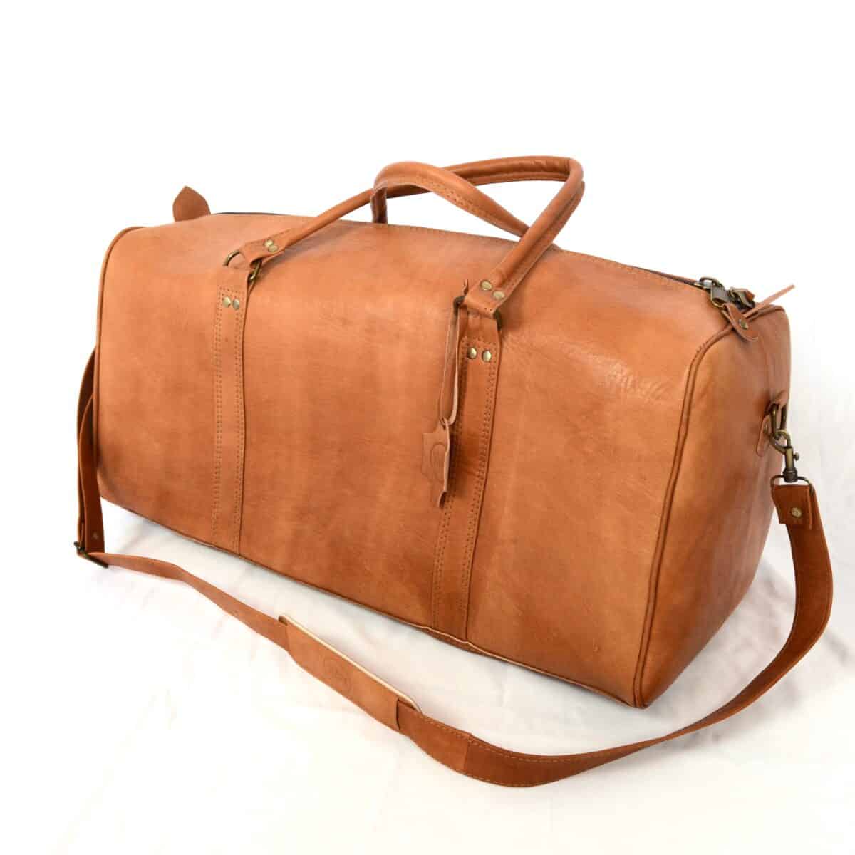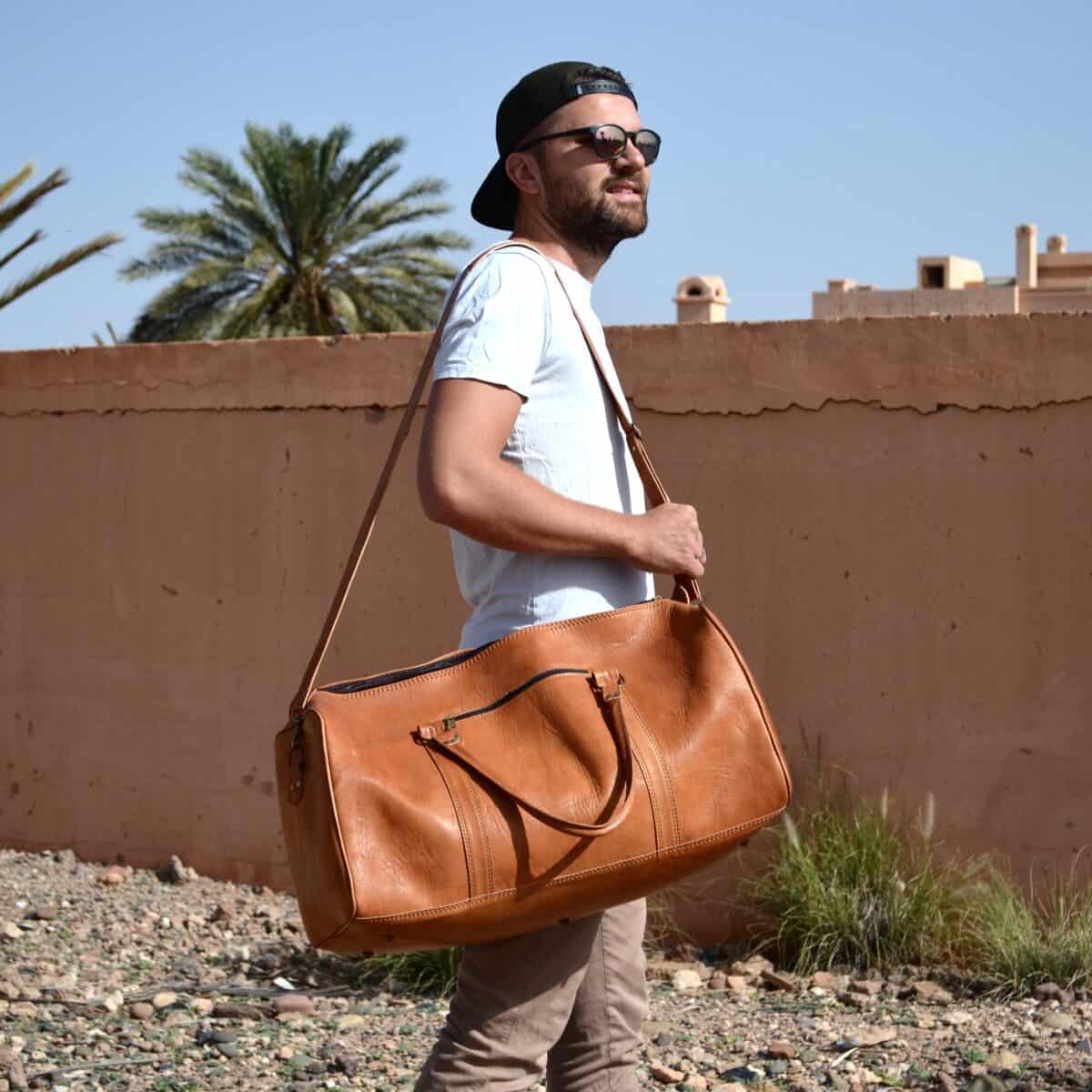 Die Reisetasche wurde in unserer Lederwerkstatt in Marrakesch handgefertigt und besteht aus Ziegenleder, welches zu 100% ohne Chemikalien verarbeitet wurde. Sie ist in den Farben dunkelbraun und hellbraun erhältlich.